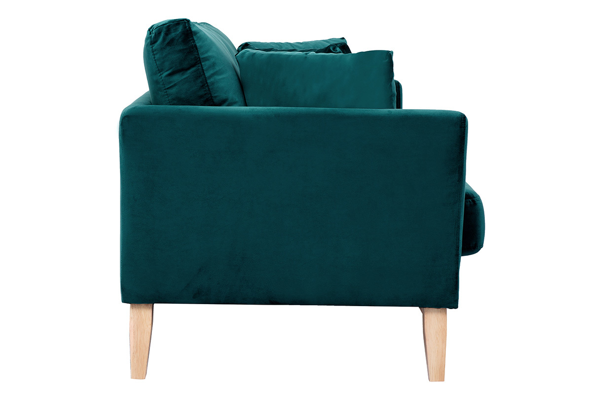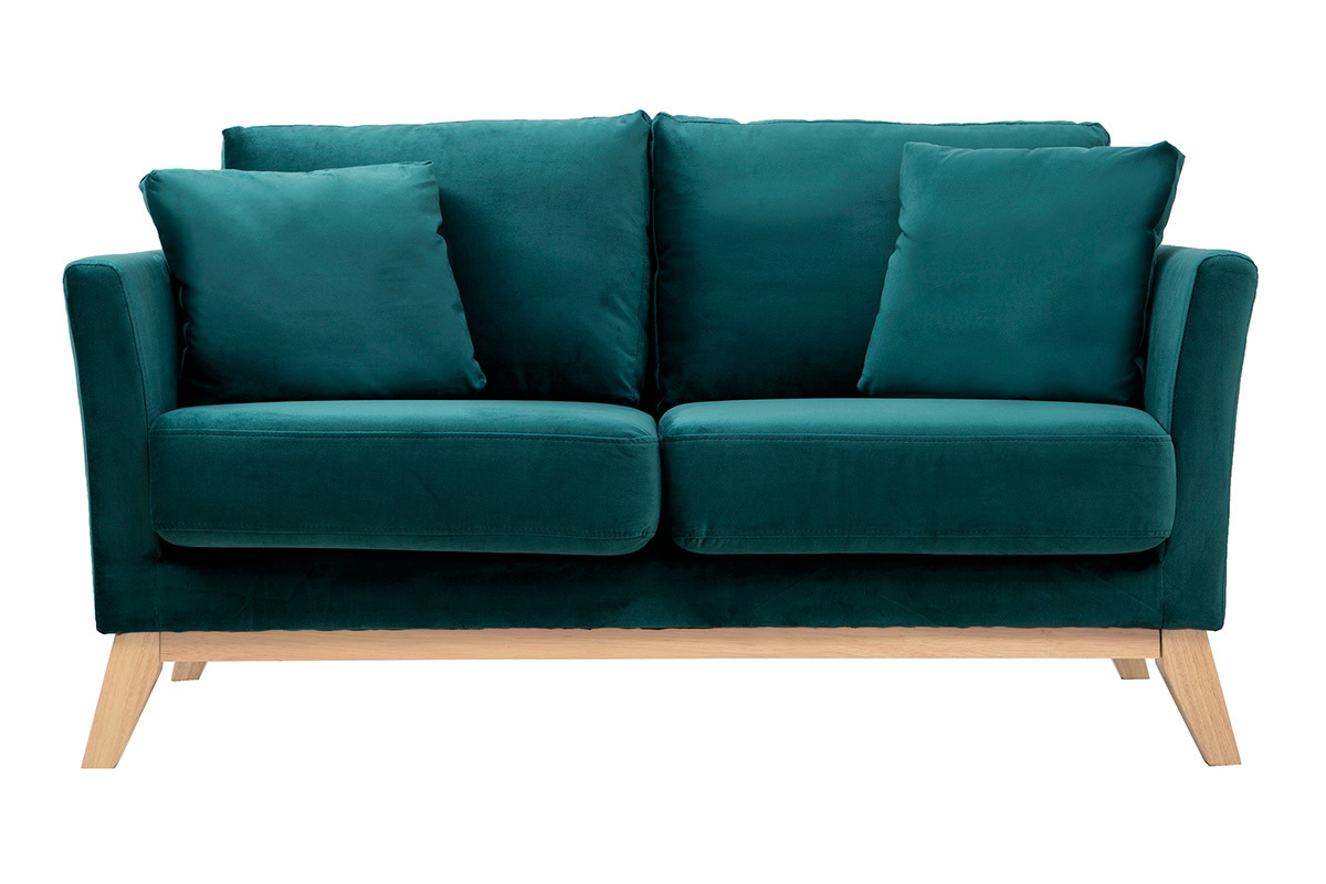 Avec son revêtement en velours, son piètement en bois clair et son design épuré, ce petit canapé s'inscrit dans la tendance nordique. Son tissu coloré en fait une assise dans l'air du temps qui se mariera aussi bien avec une décoration d'inspiration scandinave qu'un intérieur moderne et graphique.