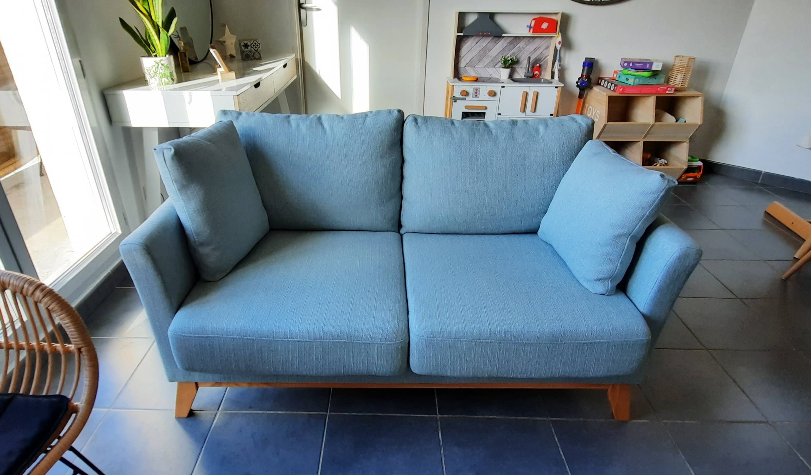 S'aménager un vrai coin salon, avec des assises confortables et tendance, c'est souvent un véritable casse-tête quand on a peu de place. Grâce à ses petites dimensions, son design scandinave et son coloris moderne, le canapé 2 places OSLO est l'allié des petits espaces qui ont du style !