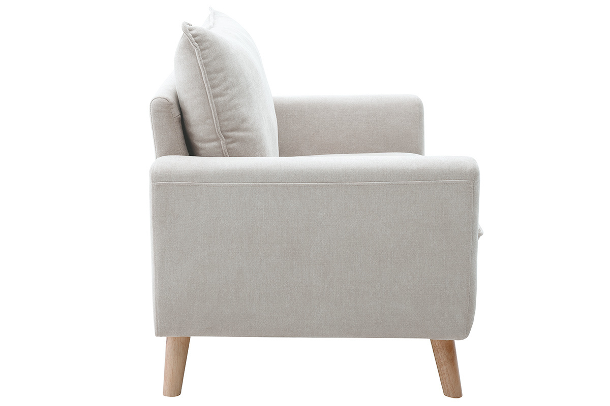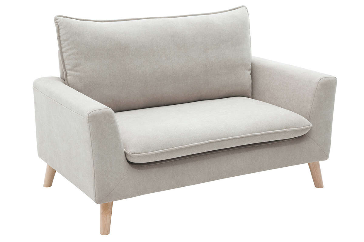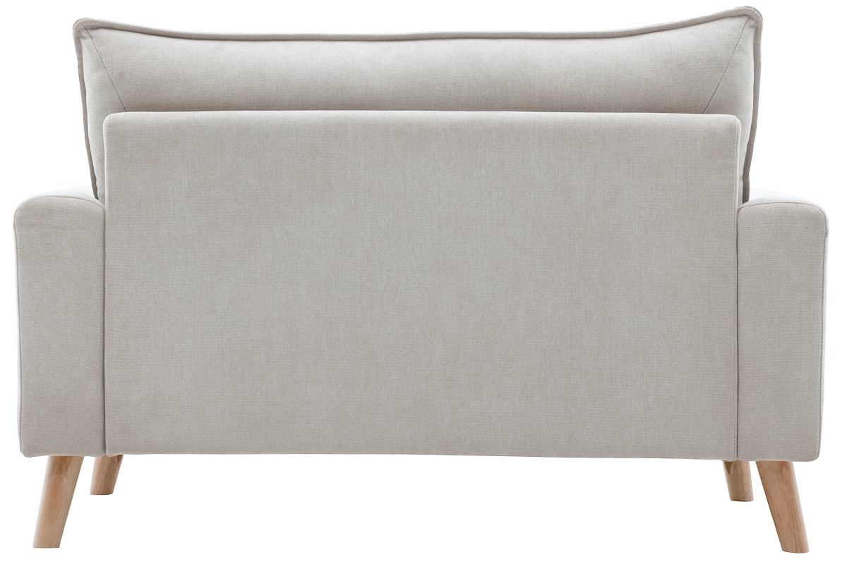 Canapé scandinave 2 places en tissu effet velours beige naturel et bois clair JONAS livré prêt à assembler.