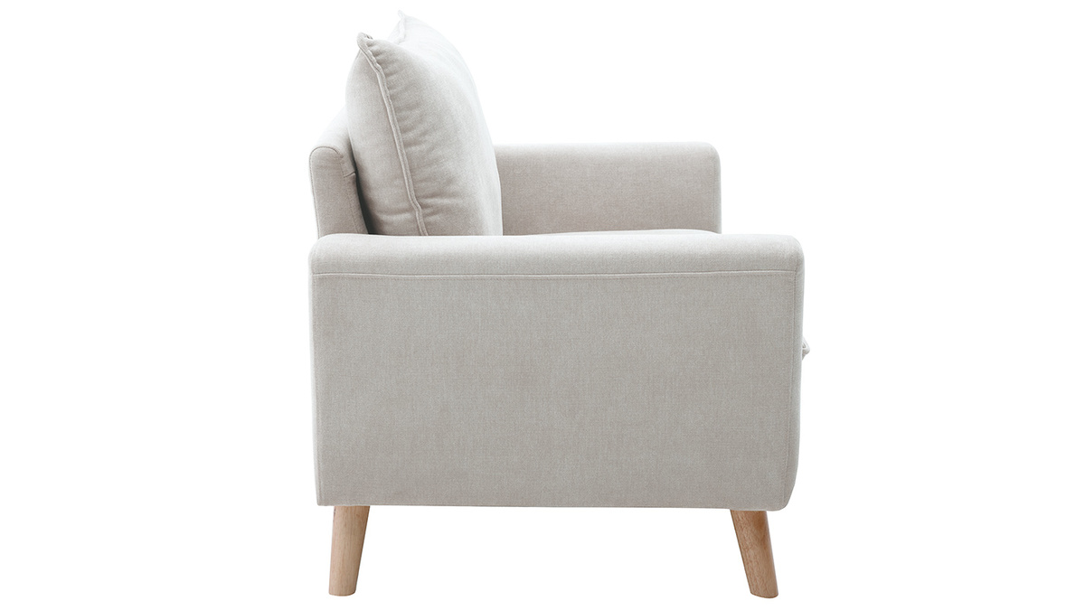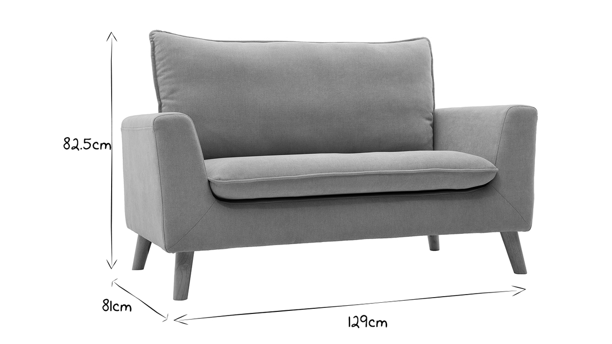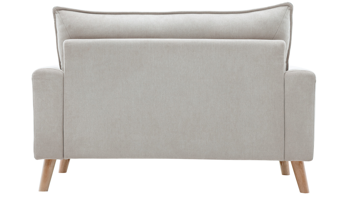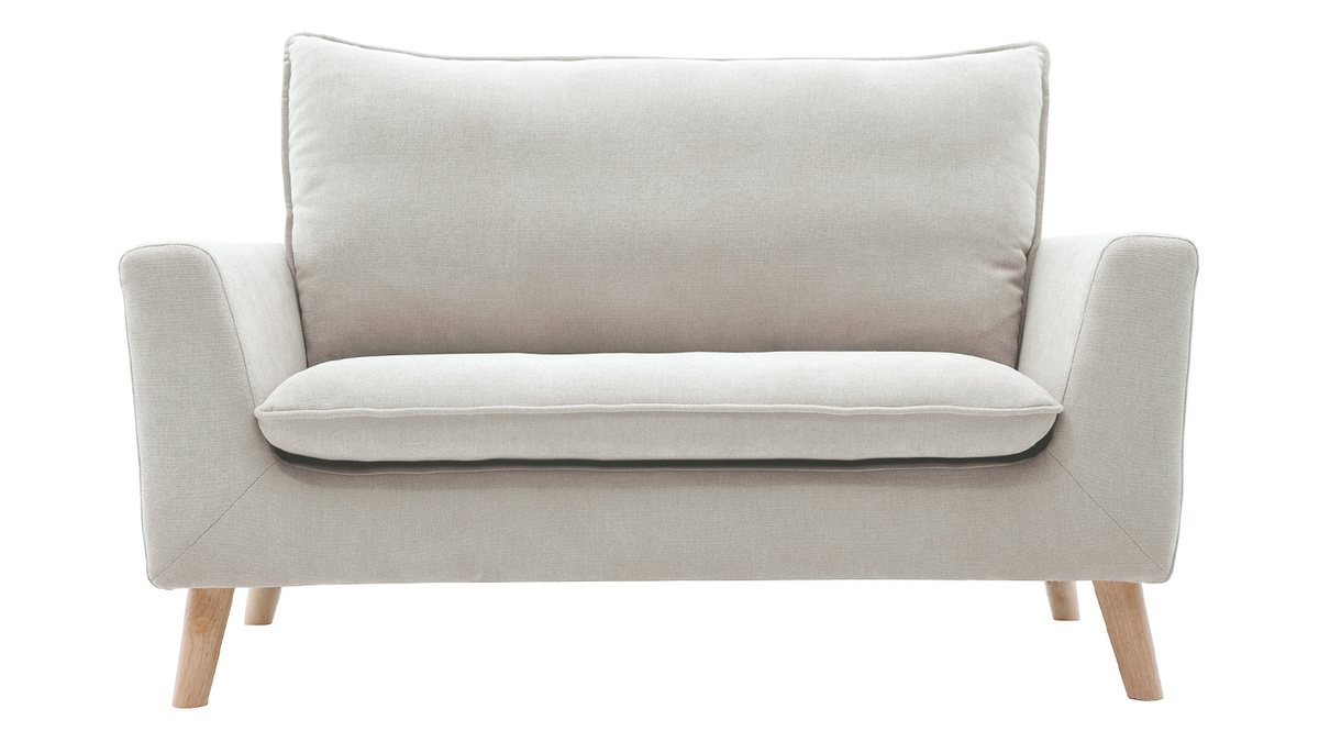 Avec ses dimensions L129 x P81 x H82.5 cm et ses galbes accueillants, ce petit canapé 2 places beige est un siège confortable adapté aux espaces les plus exigus. Un cocon de confort, doux et enveloppant qui sera parfait pour aménager un petit séjour ou un bureau.
