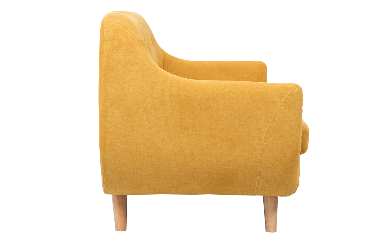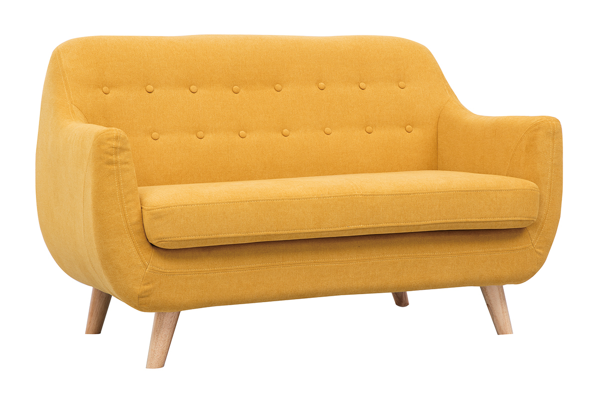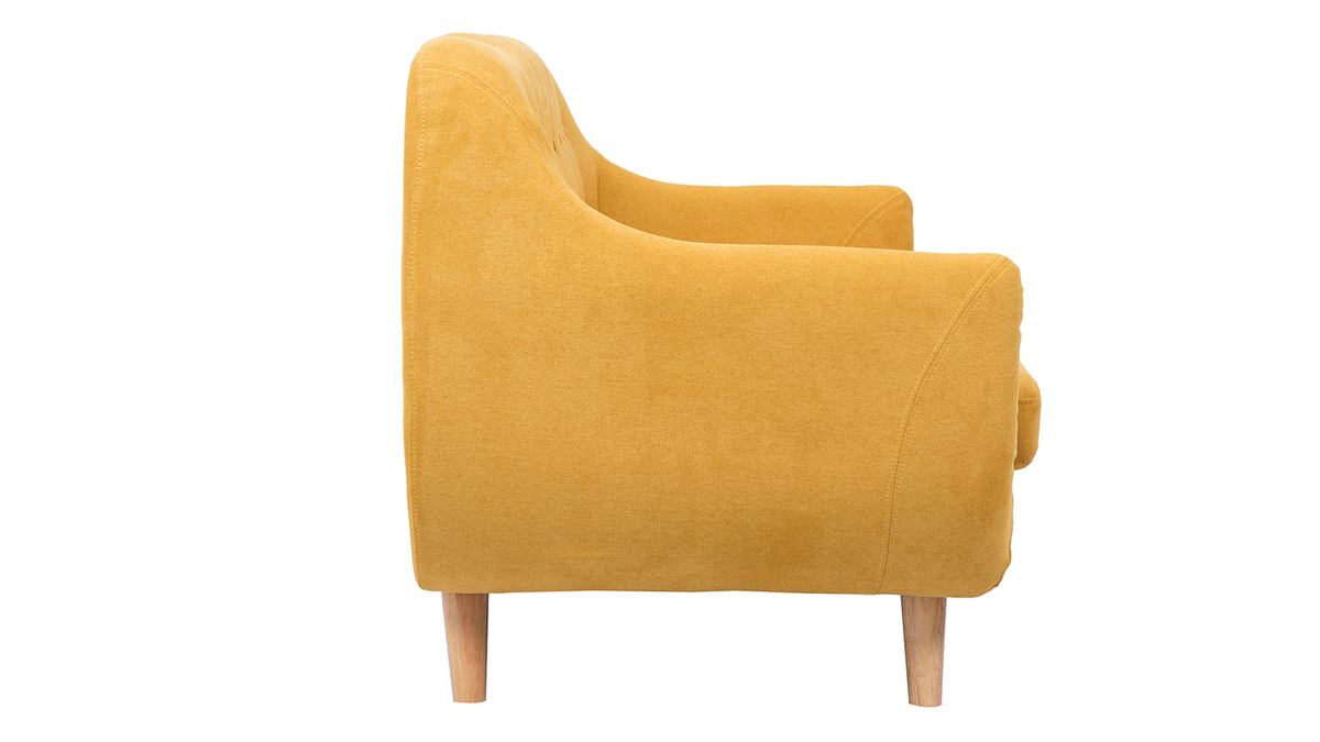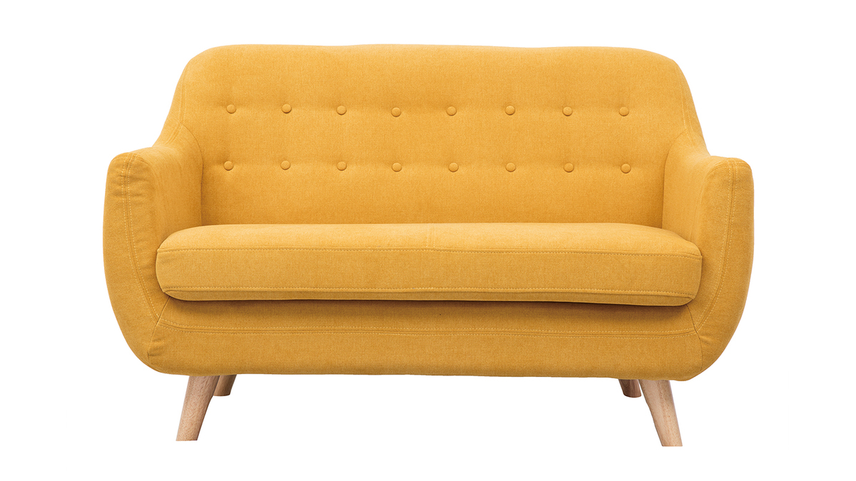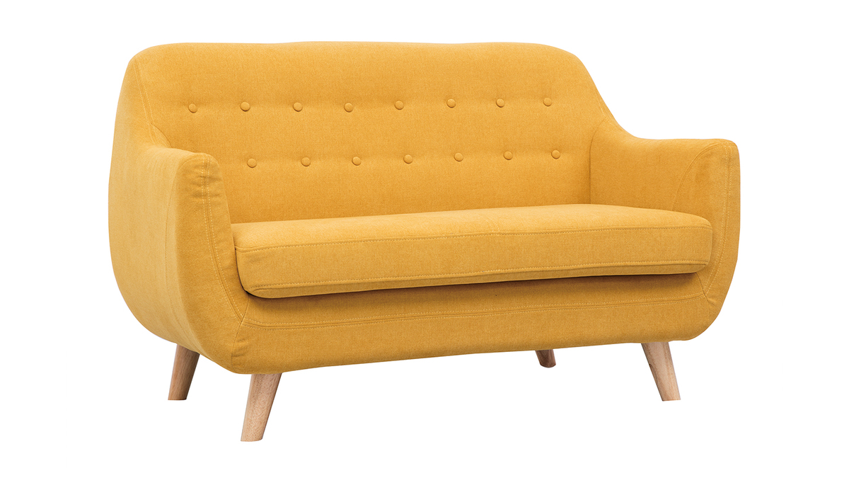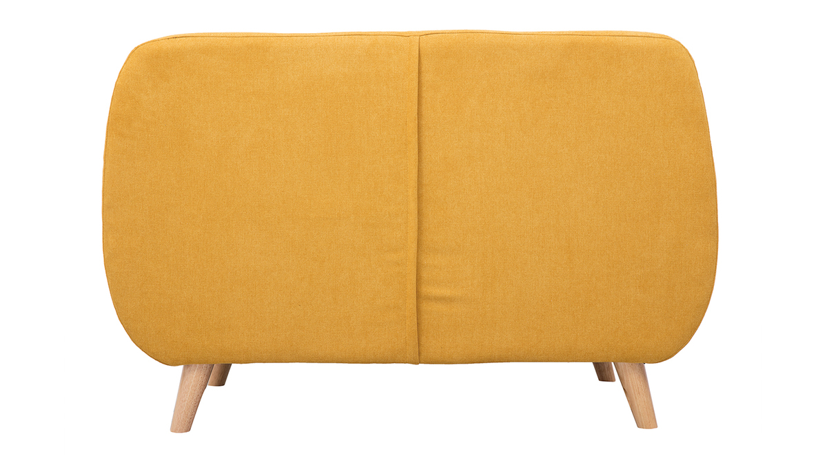 Sa forme tout en courbes, son dossier capitonné et son piètement en hévéa massif font tout le charme de ce petit canapé confortable. Si l'ensemble rappelle le style scandinave et les années 50, le joli revêtement effet velours moutarde apporte une touche colorée très actuelle. Son petit plus ? Ses dimensions ! Le modèle YNOK est une version gain de place des beaux canapés scandinaves. Il est idéal pour aménager un coin salon dans un studio.