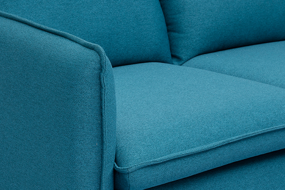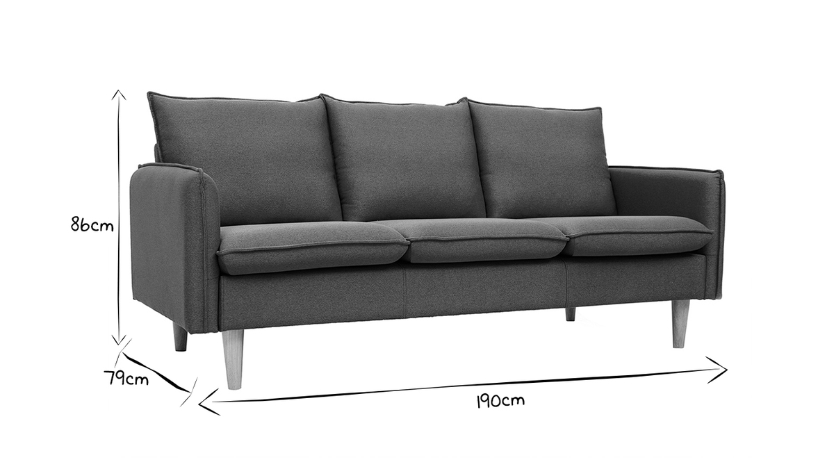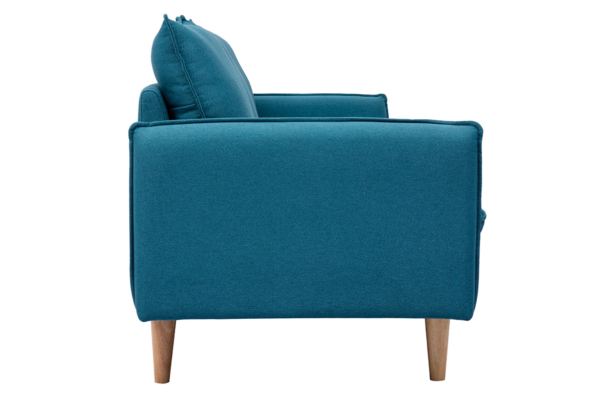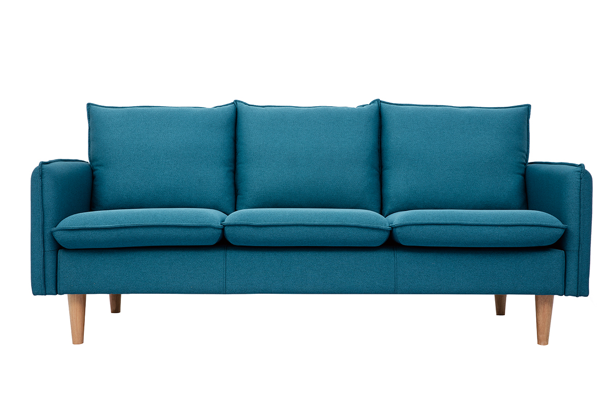C'est sa forme pure et sa jolie découpe qui nous ont charmés. Ses trois coussins d'assise et de dossier dessinent une ligne moderne qui contraste avec ses influences scandinaves. Si les matériaux qui le composent évoquent le mobilier nordique, son design en fait un siège idéal pour un salon contemporain convivial et chaleureux. On aime particulièrement l'association d'un revêtement en polyester bleu canard, à l'élégance intemporelle, et d'un piètement en hévéa massif, une essence de bois claire et lumineuse. Ce canapé 3 places est un indémodable, facile à intégrer dans différents styles de salon.
