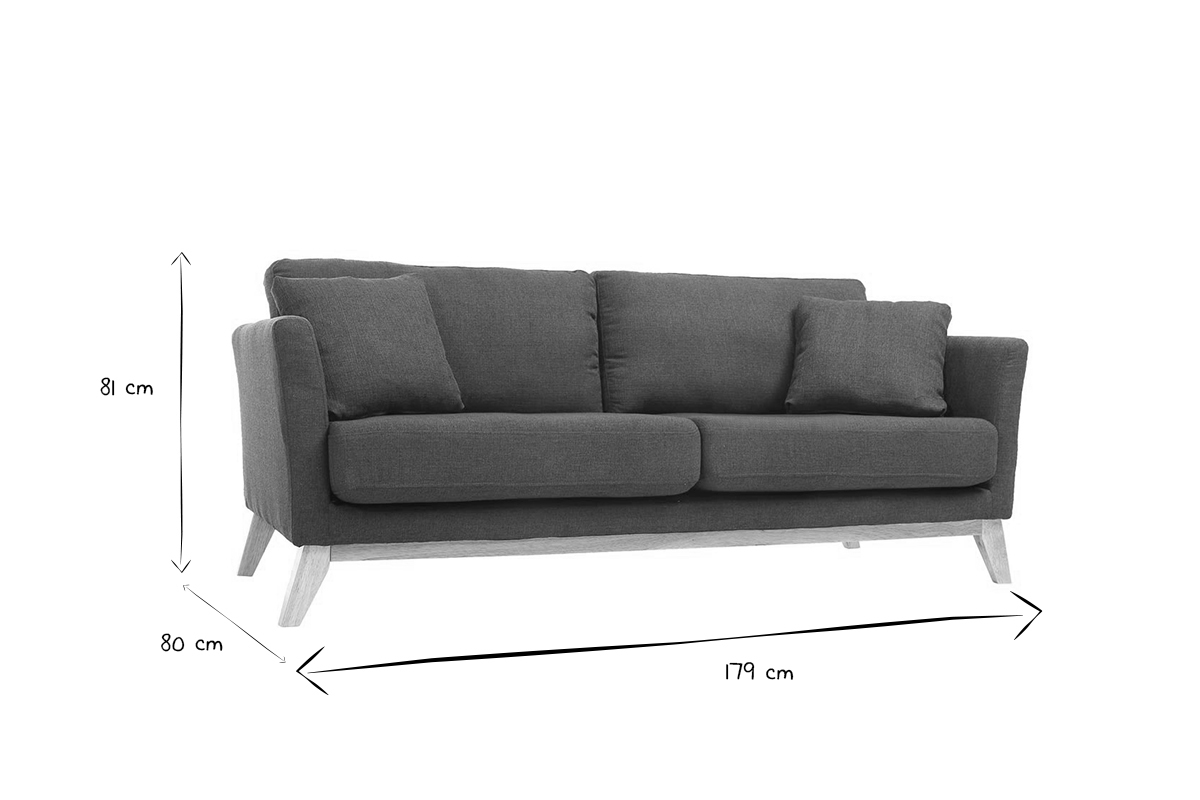 Avec ses dimensions totales L179 x P80 x H81 cm, ce petit canapé 3 places deviendra sans nul doute la pièce maîtresse de votre pièce de vie, sans grignoter l'espace ni gêner à la circulation.