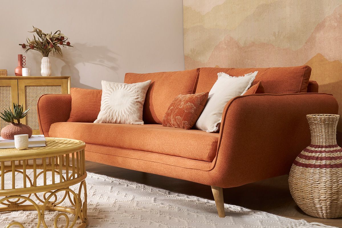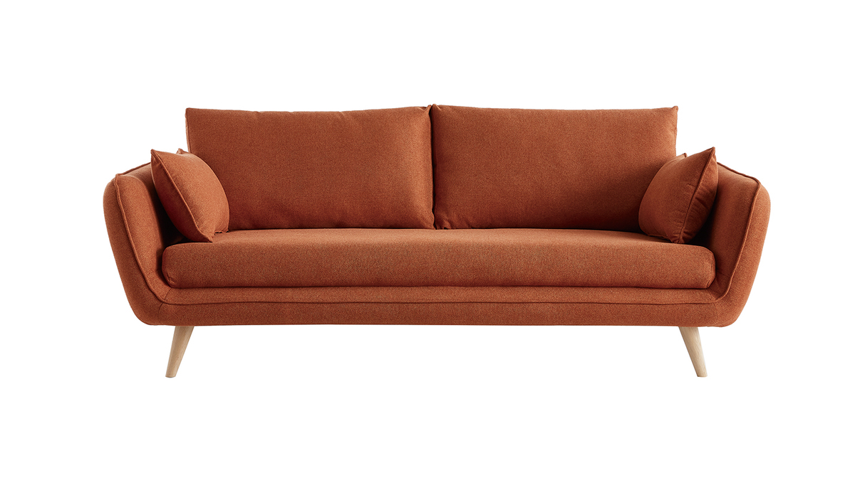 D'inspiration scandinave, le canapé 3 places CREEP trouvera sa place dans de nombreux salons grâce à sa ligne épurée et ses courbes intemporelles. Son joli revêtement en polyester brique apporte une touche élégante et raffinée à cet ensemble indémodable. Il est complété par un piètement en hêtre massif. Solide et au caractère authentique, il sublime l'assise au design réussi. Le canapé CREEP est fabriqué en France, on retrouve, dans ses matériaux et sa forme élégante, la qualité et le savoir-faire français.