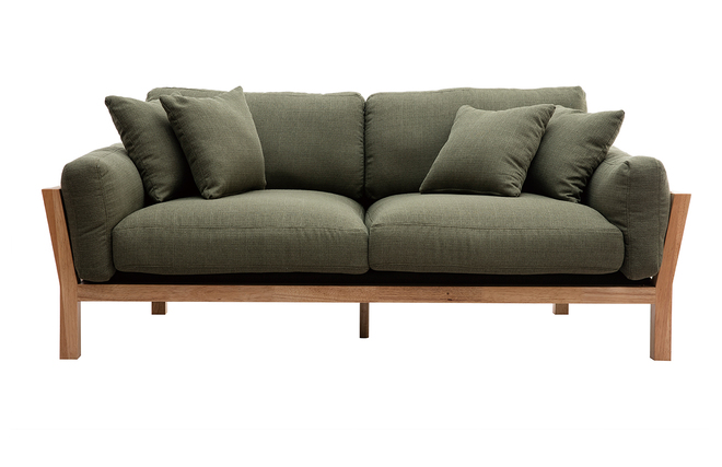 À la fois fonctionnel et esthétique, le canapé KYO possède tous les fondamentaux du style nordique : couleurs, matières, design épure et fonctionnalité. Ce canapé en bois et tissu en impose par sa structure originale en hévéa massif. Un soubassement robuste qui contraste avec le revêtement kaki (100% polyester). De quoi apporter du caractère à votre intérieur ! Ce canapé 3 places vert kaki se mariera parfaitement avec un séjour aux notes colorées ou plus neutres, scandinave, bohème ou contemporain, mais toujours dans une atmosphère chaleureuse et cosy.