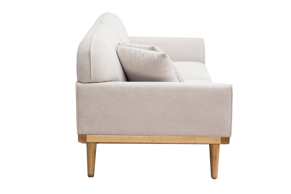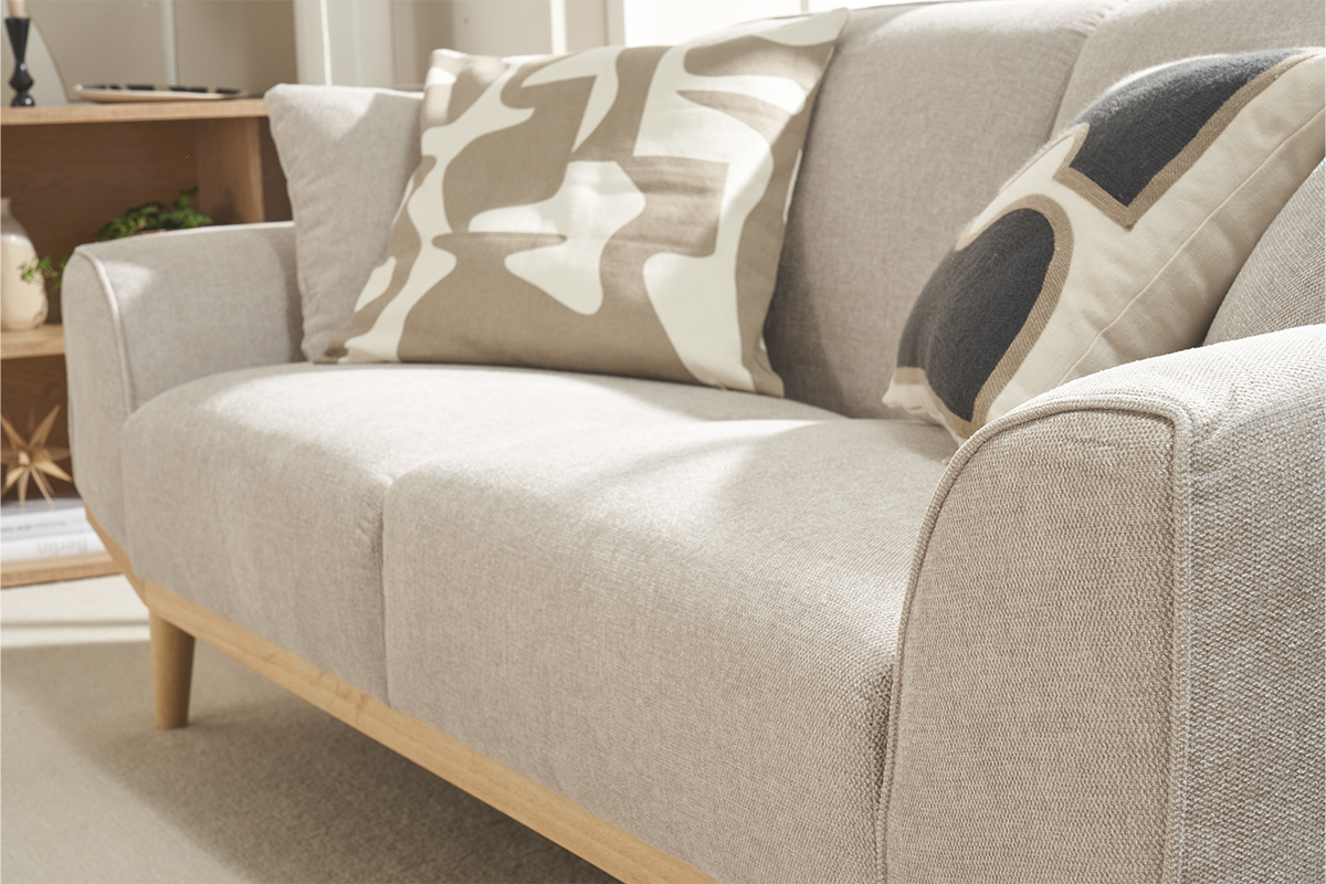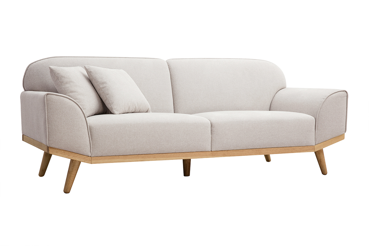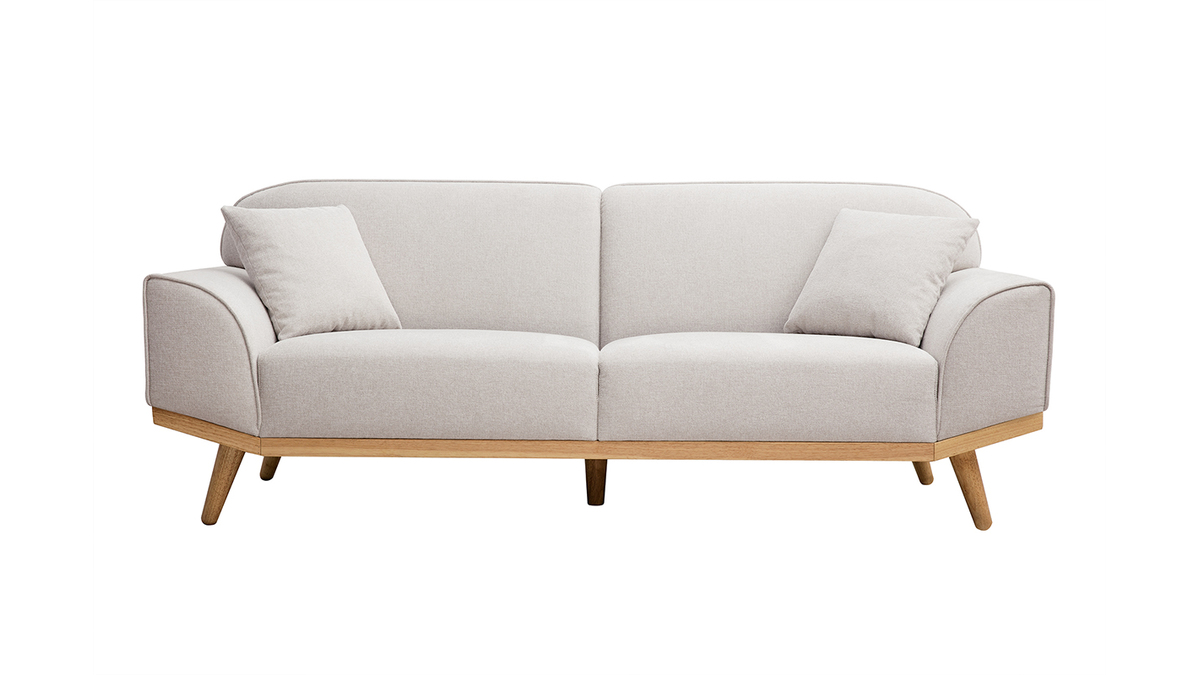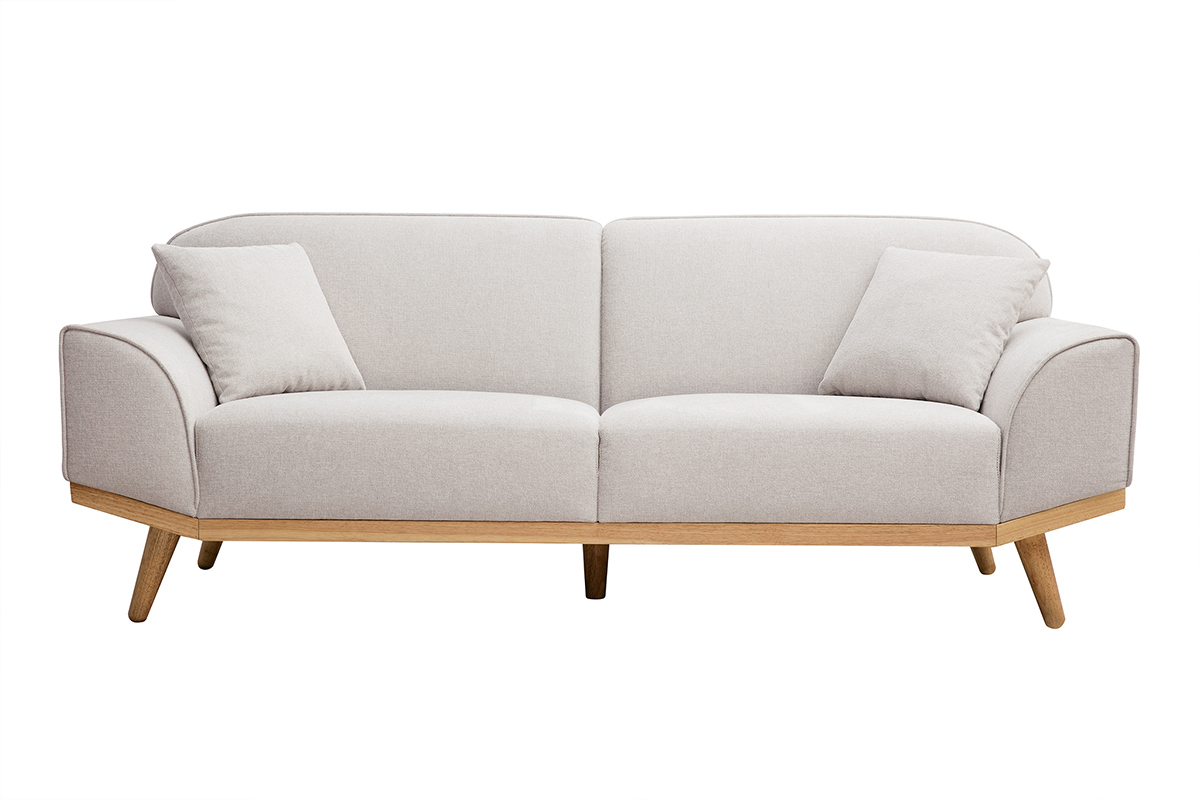 Suivre les tendances ? Miser sur l'intemporalité ? Faire preuve d'originalité ? Le canapé FREEMA fait tourner les têtes ! Un tantinet scandinave, un brin rétro et résolument moderne, ce canapé 3 places en tissu beige et bois clair chahute les codes.