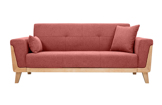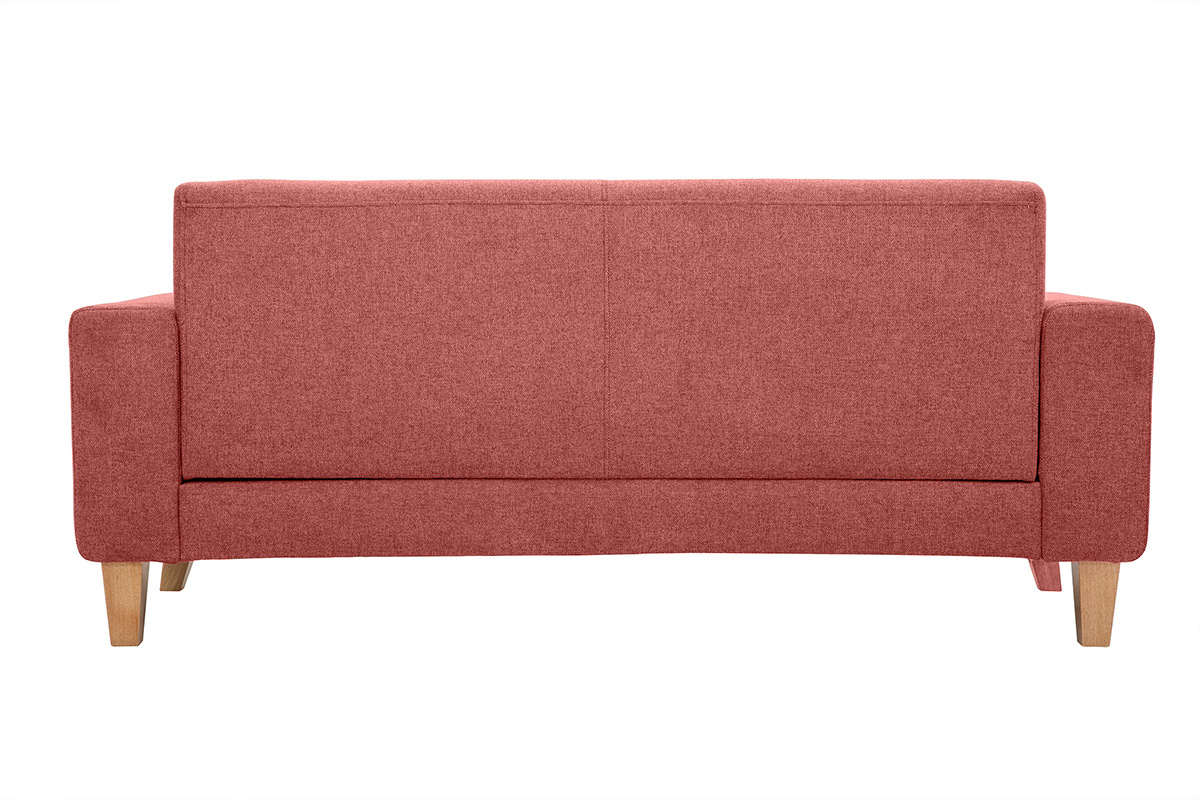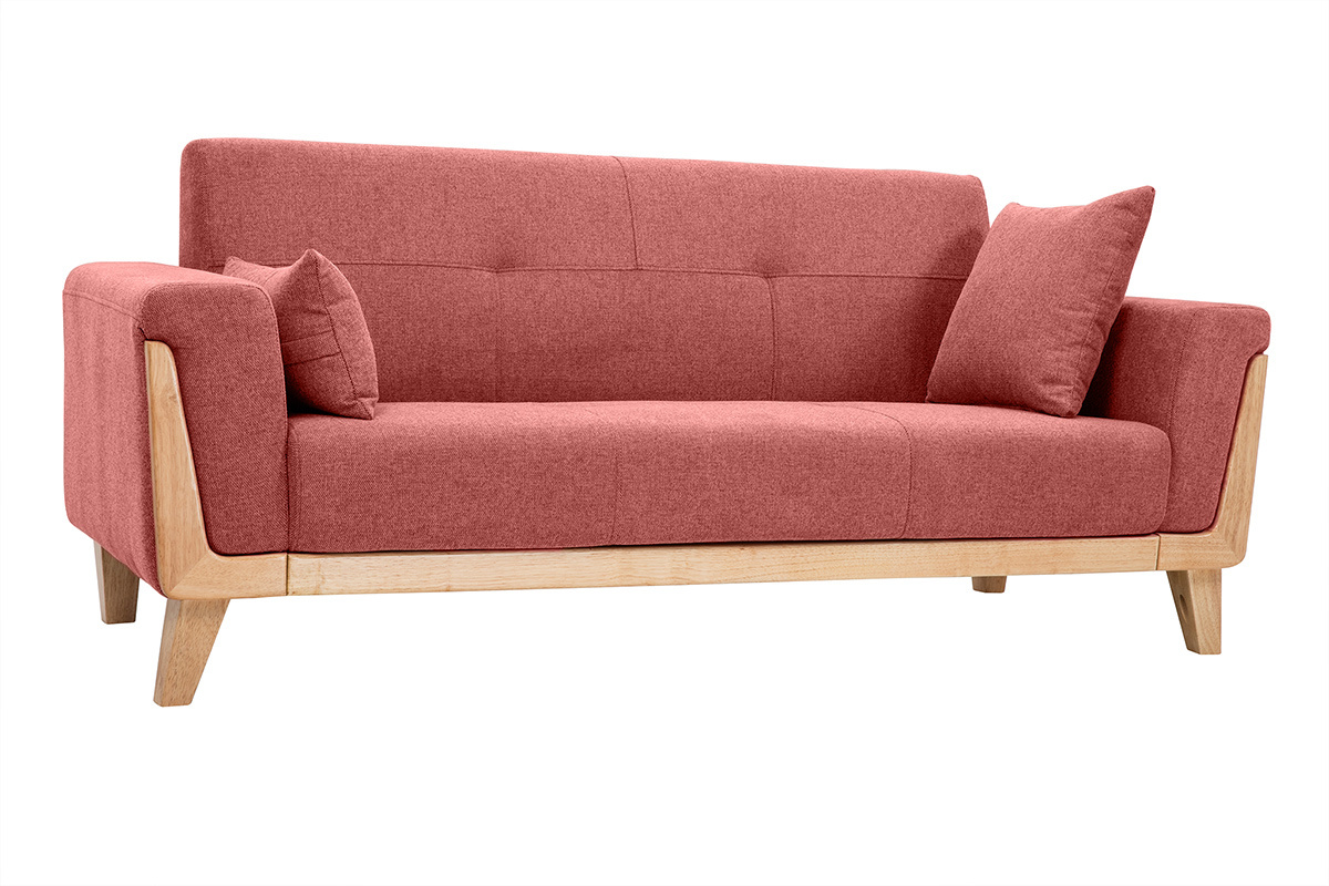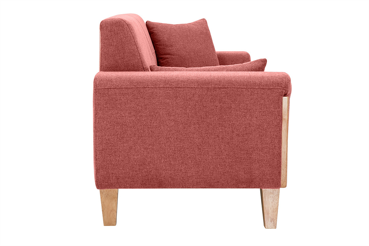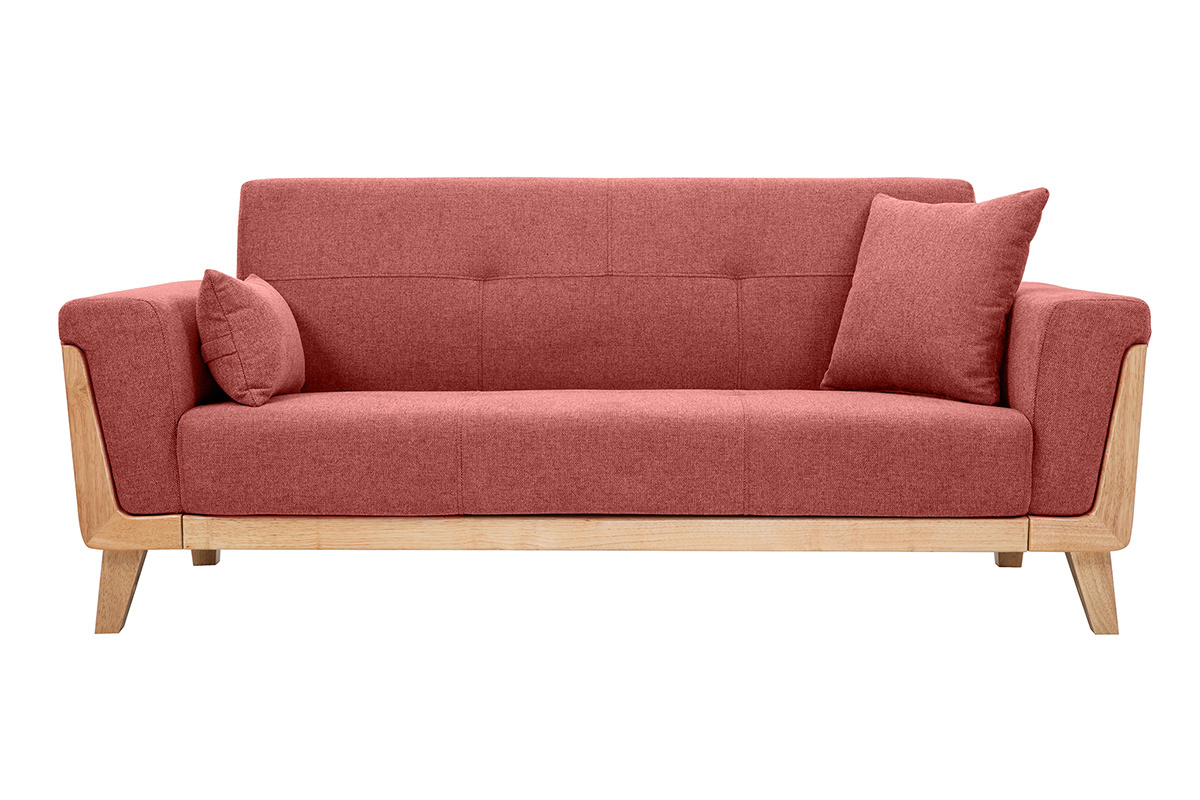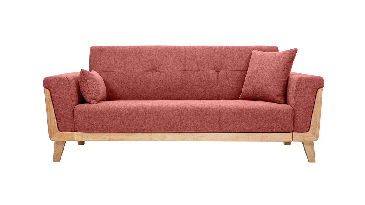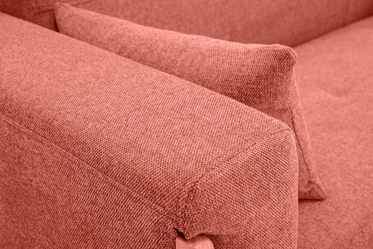 Son design et son confort font de ce canapé terracotta une assise de salon idéale ! Avec ses coutures et ses capitons qui allouent un charme sans pareil, et une structure en hévéa massif originale qui habille soubassement et accoudoirs, ce canapé scandinave en tissu et bois offre un rendu unique !