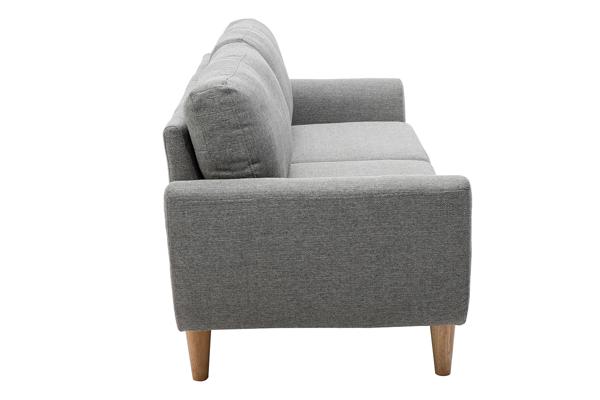 Le style scandinave a le sens du beau et du pratique. Le canapé ALICE en possède toutes les qualités. Inspiré par le design nordique, ce canapé aux lignes arrondies et à la forme épurée s'intègre dans tous les styles déco. C'est un indémodable à marier avec une table basse en bois pour un salon chaleureux. Il est revêtu d'un joli tissu 100 % polyester gris et repose sur quatre pieds en bois massif. La douceur de ses courbes s'accorde à merveille avec la légèreté visuelle de son piètement fuselé. ALICE est un petit canapé 3 places scandinave intemporel et cocooning.