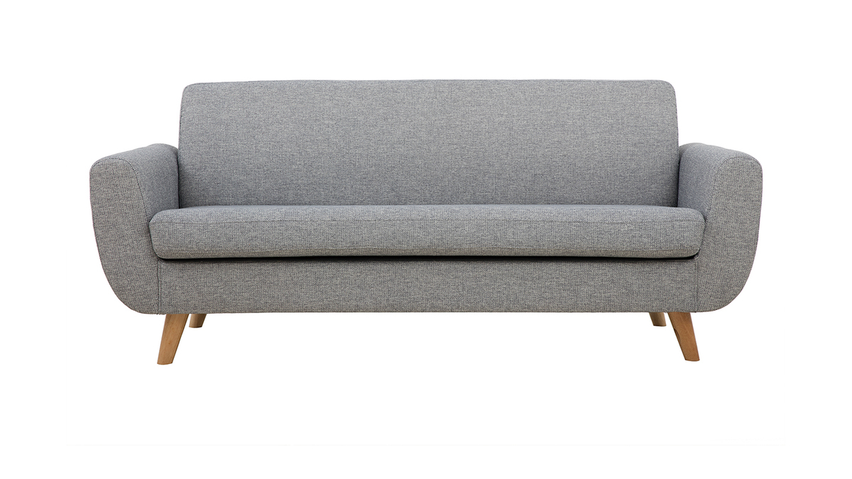Succombez au charme de ce canapé 3 places ! Véritable retour à ce qui fait l'essence même des meubles nordiques, le modèle PURE a tout pour plaire. Un design minimaliste, un joli revêtement en polyester gris, un piètement en bois massif... tout a été pensé pour faire du salon un espace chaleureux au style intemporel. On aime particulièrement la douceur de ses courbes et l'authenticité de ses pieds en bois massif, un mariage plein de charme !
