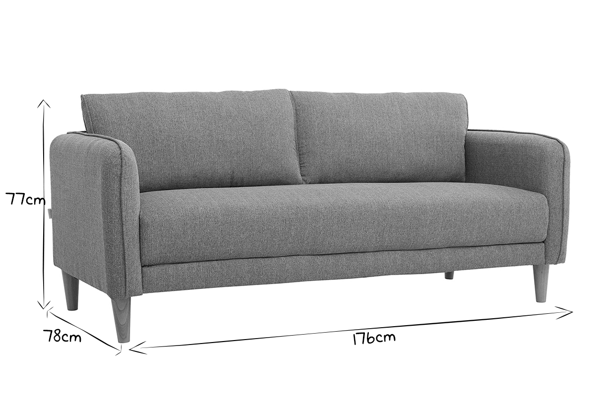 Grâce à ses dimensions, ce canapé scandinave peut accueillir trois personnes. Ses coussins garnis de mousse garantissent un bon confort d'assise.