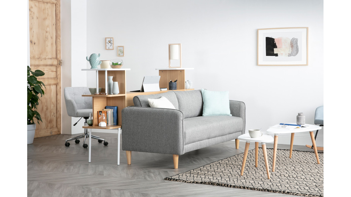 Inspiré du mobilier scandinave, ce canapé 3 places a tout pour devenir un intemporel : une forme épurée, un coloris indémodable, des matériaux chaleureux. L'association entre une assise en tissu et un piètement en bois clair permet d'aménager un salon cosy qui s'adapte à toutes nos envies déco. Pour un séjour où il fait bon se détendre, on accompagne ce canapé du rocking chair bleu canard BALTIK.