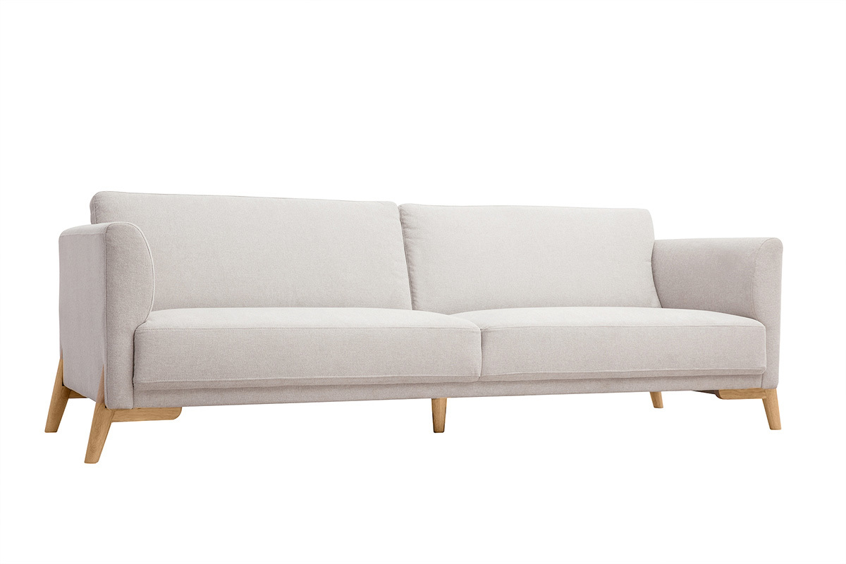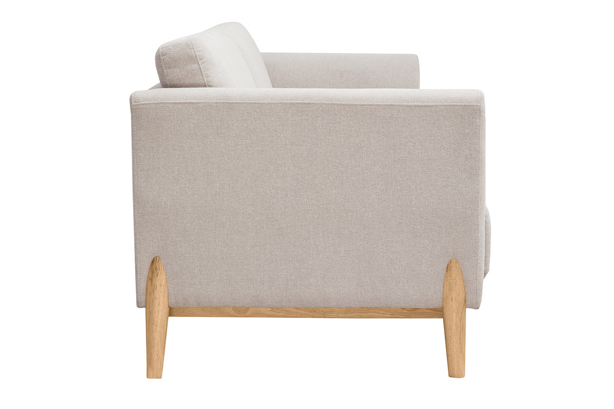 Design sobre, couleur intemporelle, ce canapé 4 places en tissu beige et bois clair se distingue par la simplicité de ses lignes. Plébiscité pour son aspect chaleureux et authentique, le bois fait ici une jolie percée. Le piètement en hévéa massif soutien avec robustesse, les volumes d'une structure accueillante habillée d'un tissu effet velours texturé beige (95% polyester 5% nylon). Un duo qui appose une empreinte déco nordique et impose son élégance avec douceur. Avec son look classique, ce grand canapé scandinave beige s'exporte à l'envi dans de nombreux styles d'intérieur !