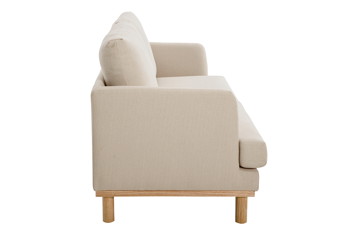 Avec son style scandinave résolument tendance, ce canapé 3 places conjugue sobriété et élégance. Il est habillé d'un élégant tissu (100% polyester) dont la couleur douce et lumineuse invite à la quiétude et la sérénité. La structure en bois souligne les lignes essentielles du canapé tandis que les pieds en hévéa (H13 cm) ajoutent une dimension légère à la silhouette.
