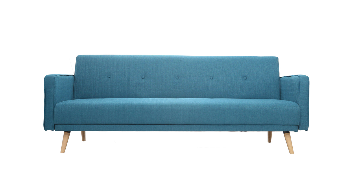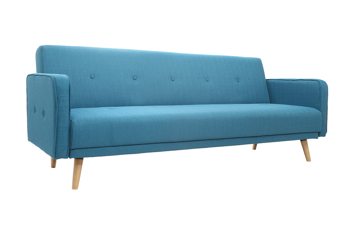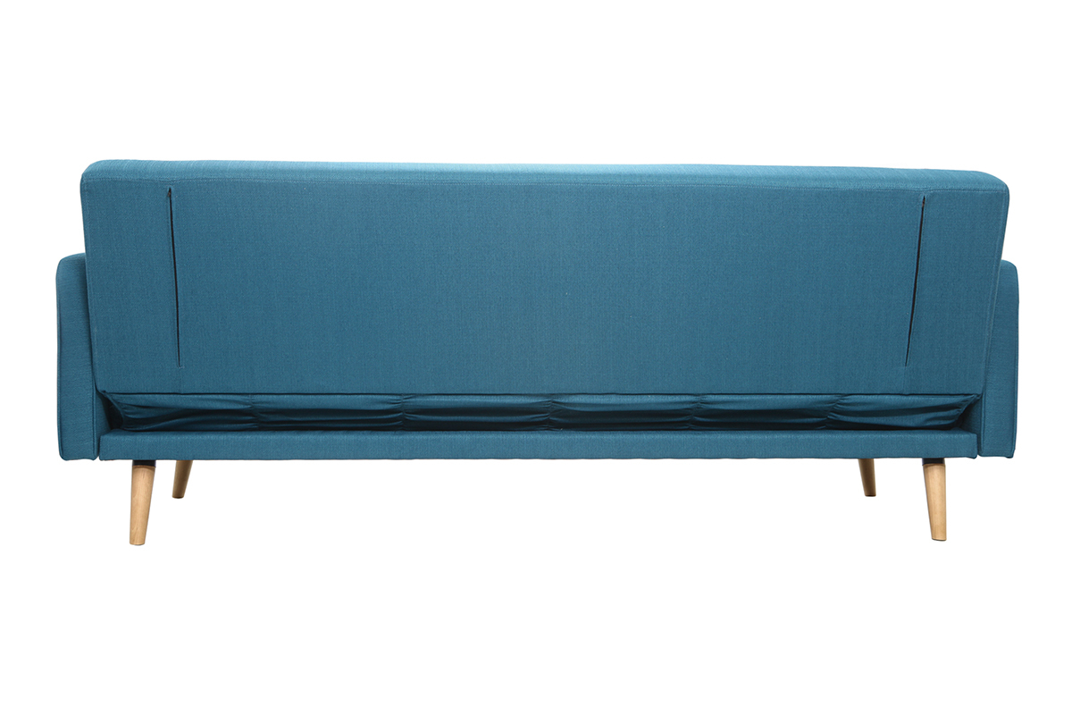 Avec son revêtement en tissu (100% polyester), sa belle couleur bleu, son piétement en bois clair et sa forme épurée, ce canapé convertible 3 places forme une belle assise au design indémodable.