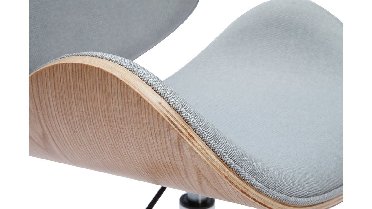 Ses lignes courbes et son mélange de matériaux en font une chaise de bureau d'inspiration scandinave très tendance. Son assise et son dossier recouverts de polyester gris contrastent joliment avec la structure en bois cintré finition bois clair. WALNUT est une chaise de bureau ultra déco qu'on prend plaisir à voir trôner dans la pièce. Moderne et élégante, elle a toute sa place dans nos intérieurs.