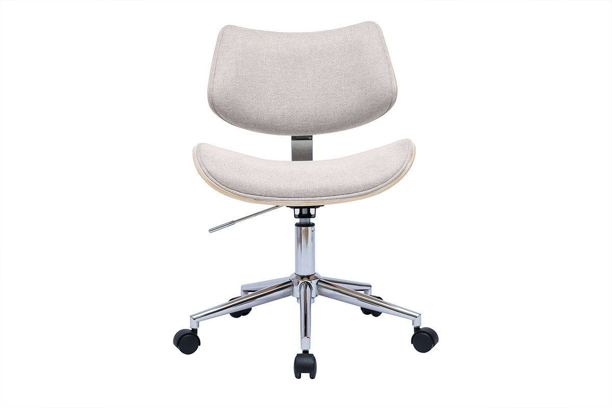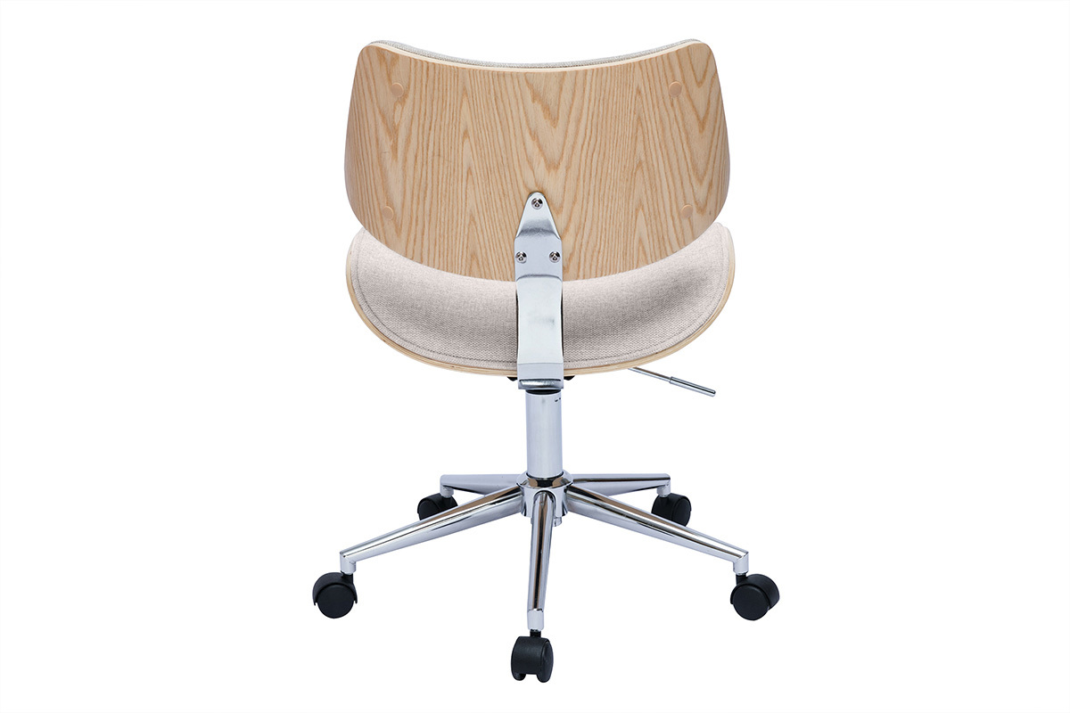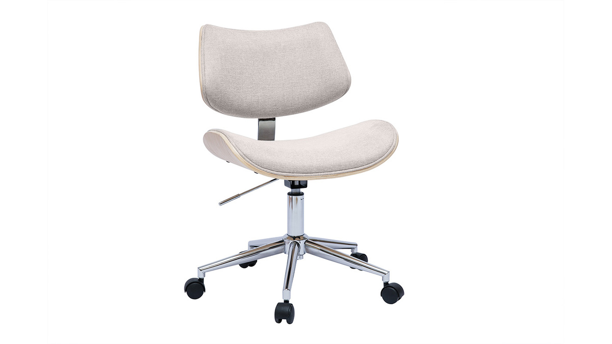 Bien pensée, cette chaise de bureau à roulettes beige et bois clair avec siège pivotant 360°, se déplace aisément d'une pièce à l'autre et garantit une mobilité appréciable à ses utilisateurs.