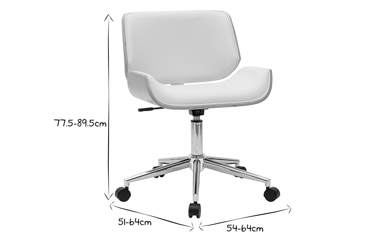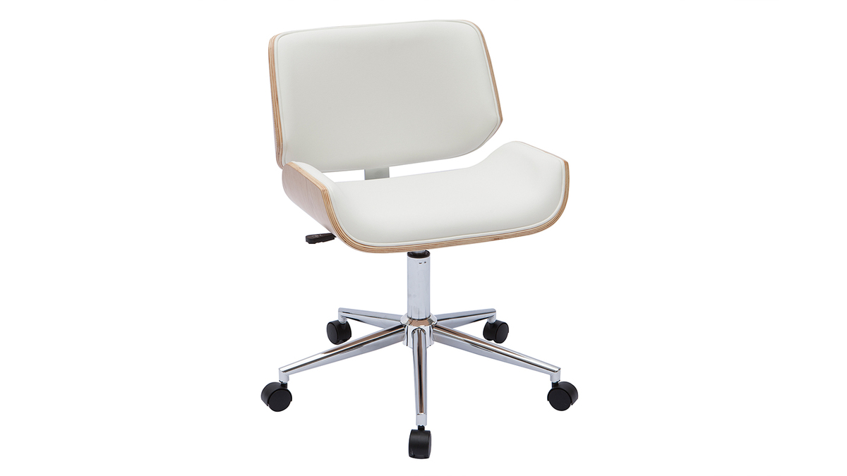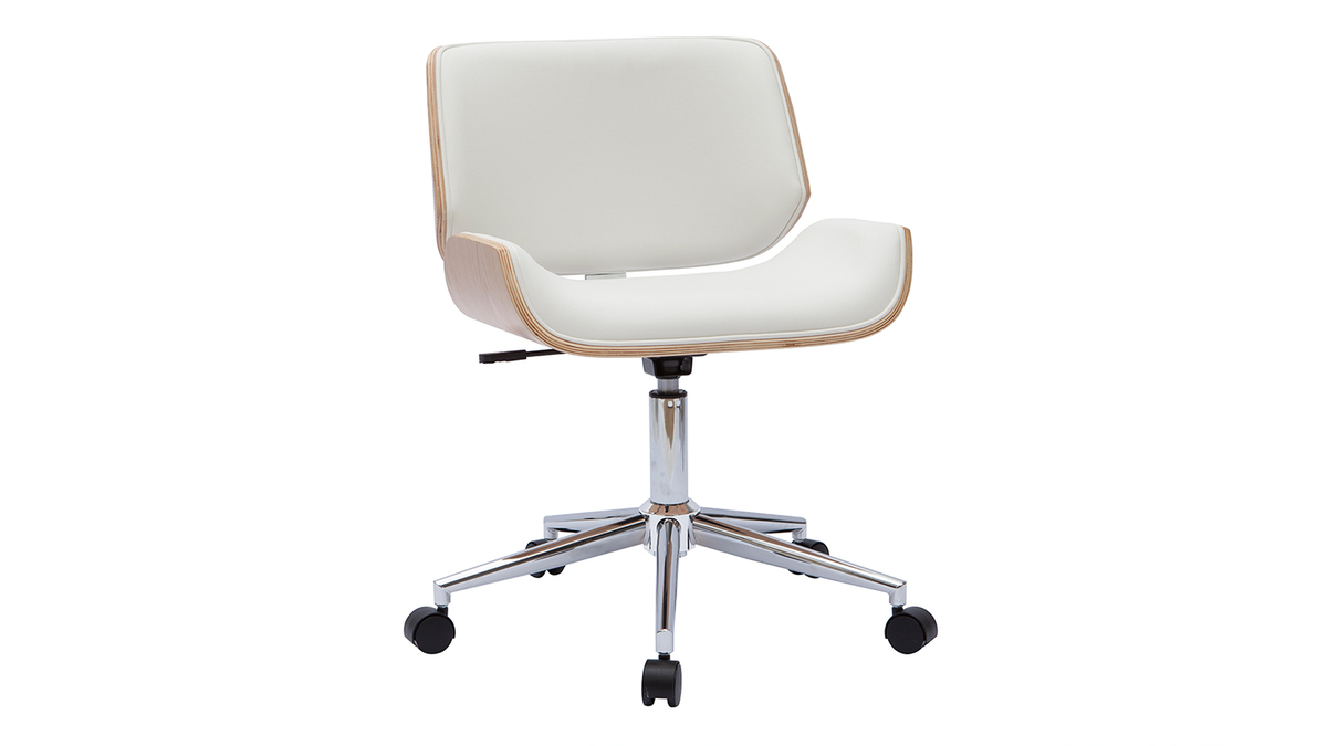 De l'allure, mais pas que ! Avec une assise et un dossier rembourrés, c'est une chaise de bureau confortable. Son siège pivotant est réglable en hauteur (entre 47 et 59 cm de hauteur d'assise) pour s'adapter à chacun. Afin de rester mobile, cette chaise de bureau blanche est munie de 5 roulettes.