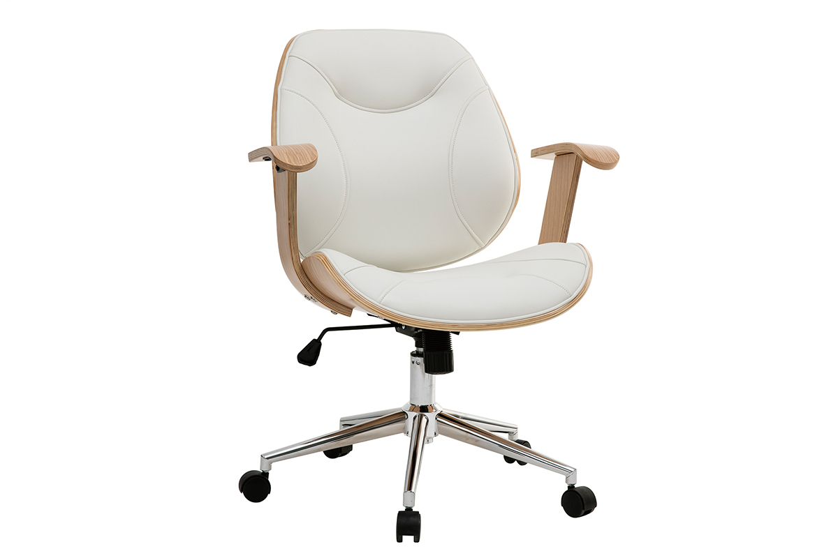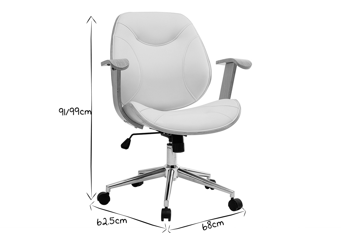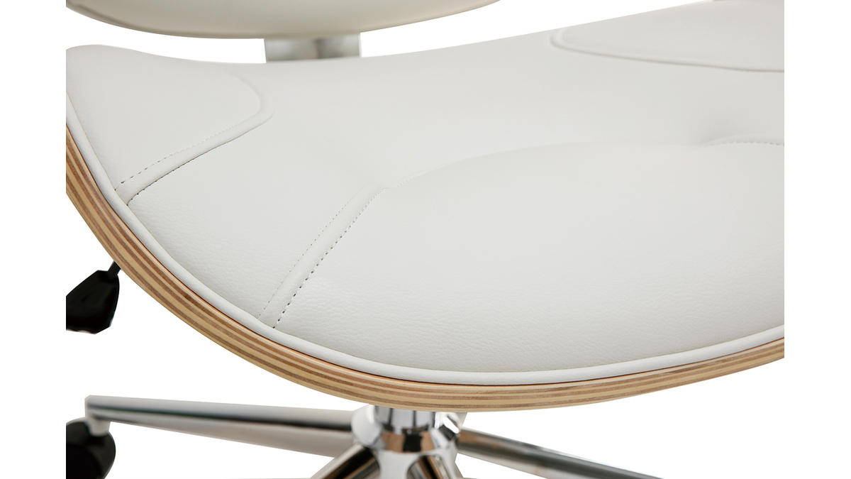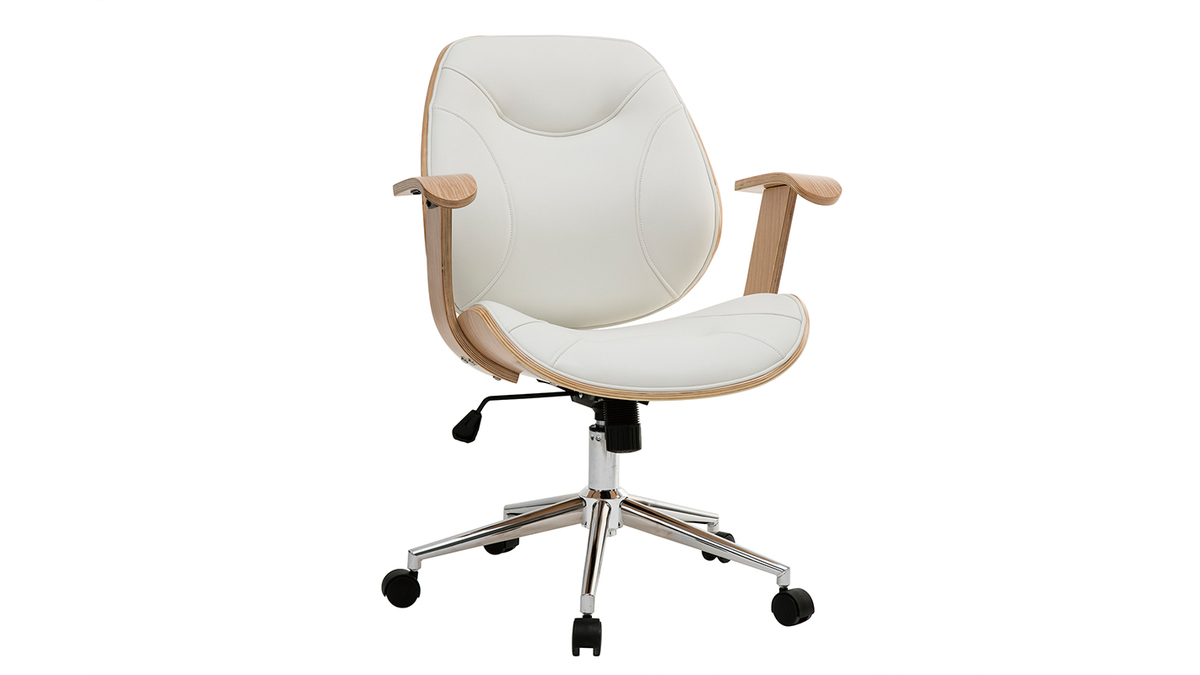 Pour un espace de travail au confort optimal, dossier et assise ont été rembourrés et des accoudoirs ont été ajoutés. Le piètement en métal chromé est équipé de cinq roulettes assurant une parfaite mobilité. La hauteur d'assise est réglable entre 47 et 55 cm et s'adapte ainsi à toute la maisonnée. Cette chaise de bureau design est pivotant.