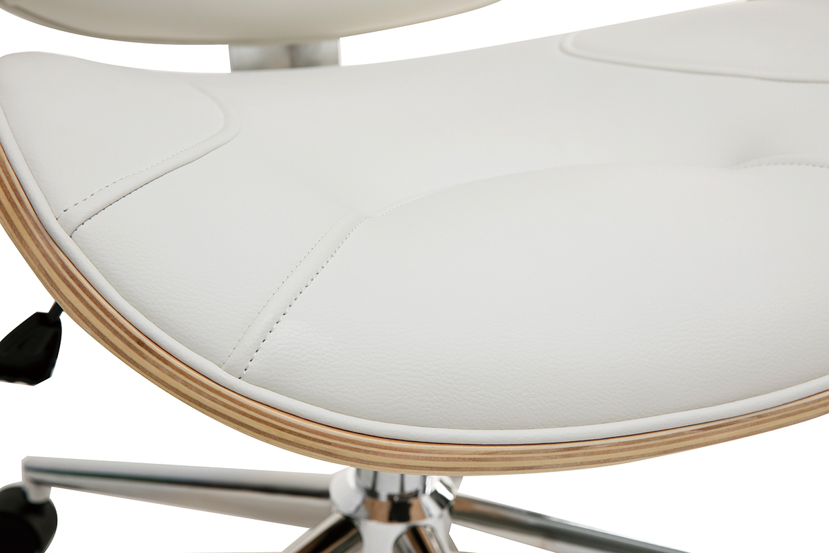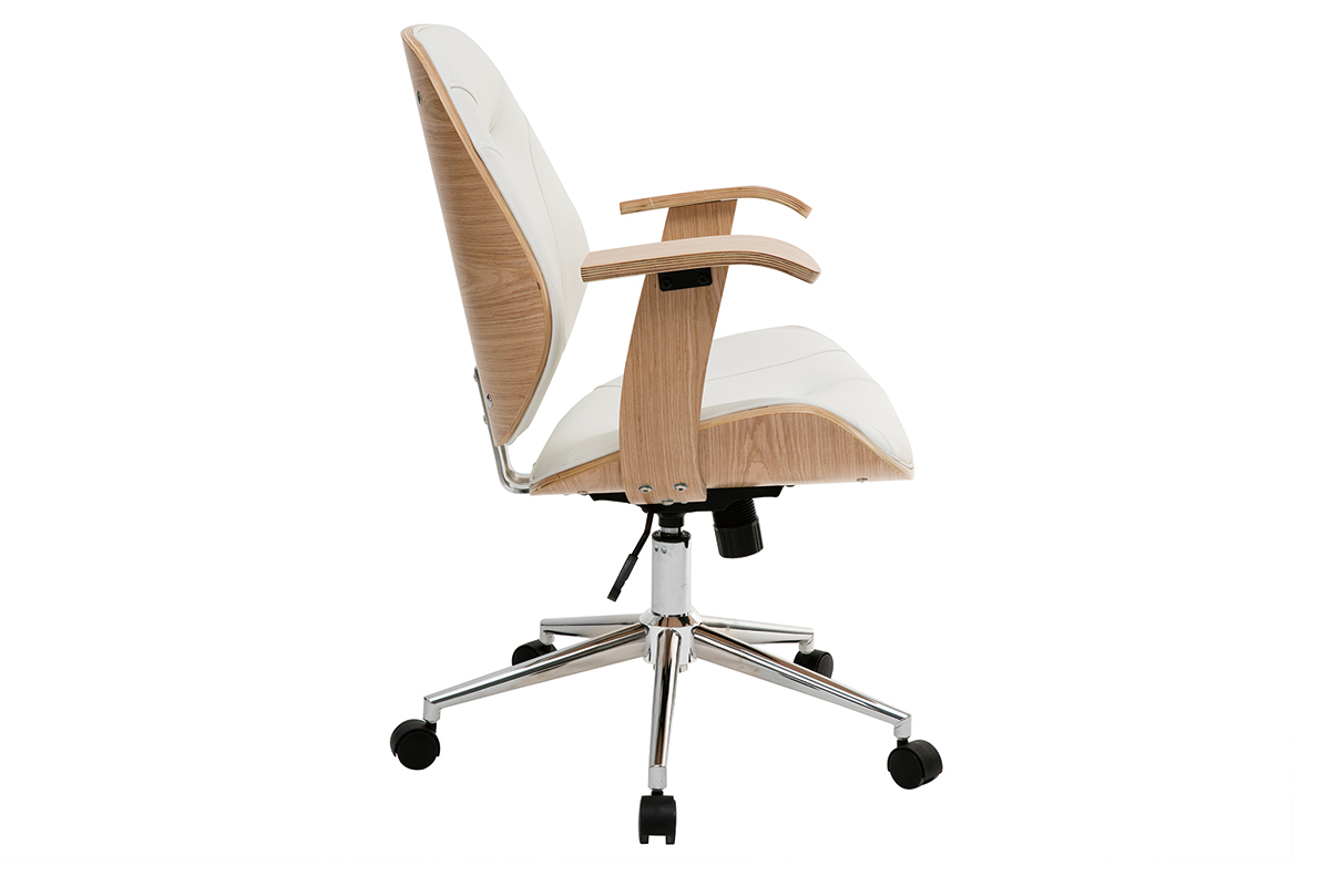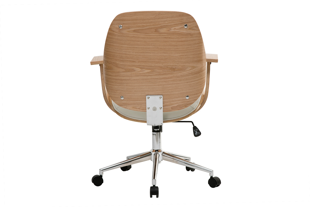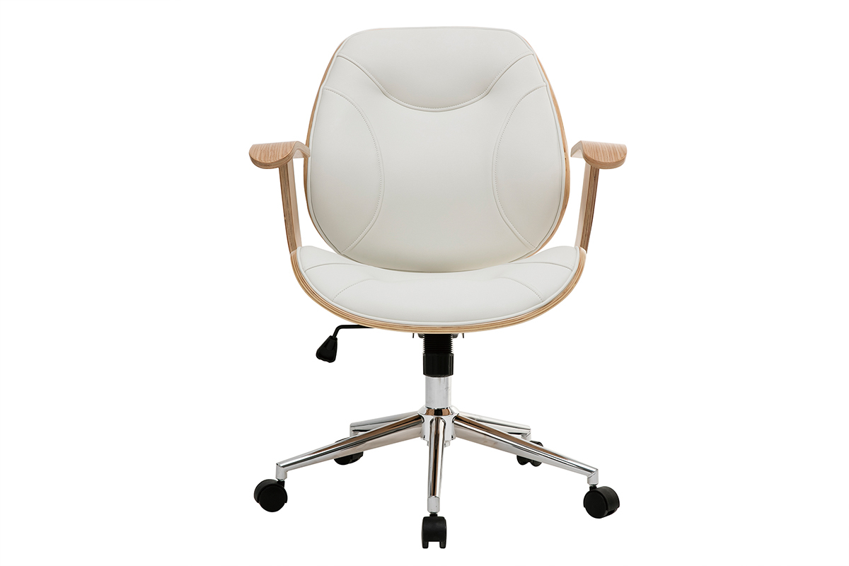 Pour un espace de travail au confort optimal, dossier et assise ont été rembourrés et des accoudoirs ont été ajoutés. Le piètement en métal chromé est équipé de cinq roulettes assurant une parfaite mobilité. La hauteur d'assise est réglable entre 47 et 55 cm et s'adapte ainsi à toute la maisonnée. Cette chaise de bureau design est pivotant.
