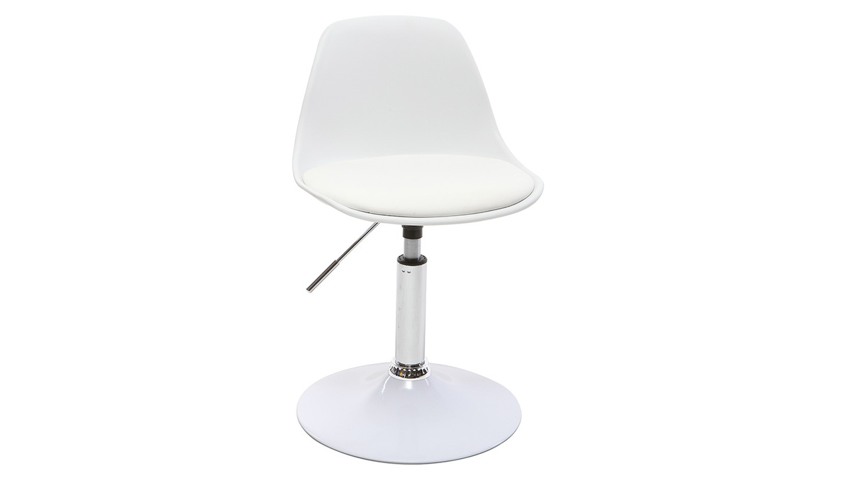 Grâce à sa hauteur d'assise réglable (manette située sous le siège), cette chaise de bureau blanche pour enfant s'adaptera parfaitement à la taille de votre bambin. Pour apporter une bonne posture et du confort supplémentaire, le coussin d'assise - garni d'une mousse densité de 24 kg/m³ - et le dossier incurvé forme un siège agréable pour accueillir les plus petits. Équipé d'un piètement base fixe, ce fauteuil rotatif 360° pour enfant offre une belle liberté de mouvement à votre chérubin.