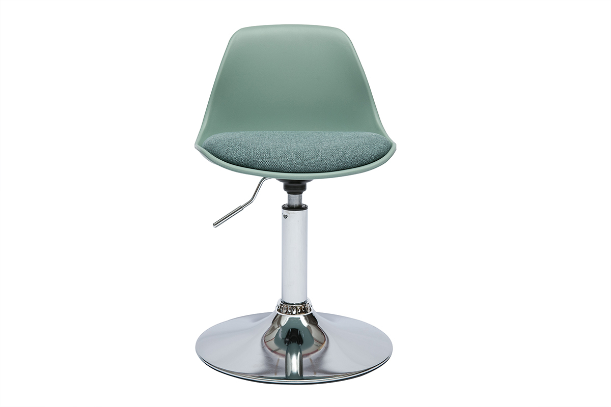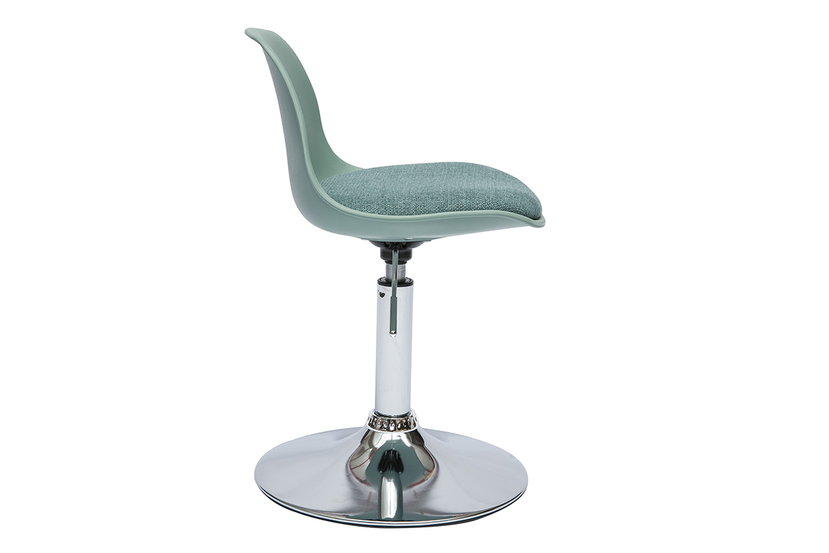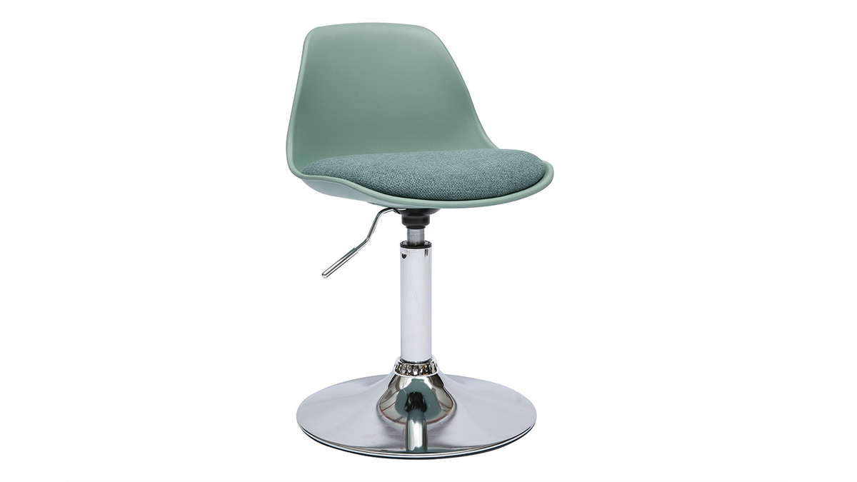 Grâce à sa hauteur d'assise réglable (manette située sous le siège), cette chaise de bureau vert de gris pour enfant s'adaptera parfaitement à la taille de votre bambin. Pour apporter une bonne posture et du confort supplémentaire, le coussin d'assise - garni d'une mousse densité de 24 kg/m³ - et le dossier incurvé forme un siège agréable pour accueillir les plus petits. Équipé d'un piètement base fixe, ce fauteuil rotatif 360° pour enfant offre une belle liberté de mouvement à votre chérubin.
