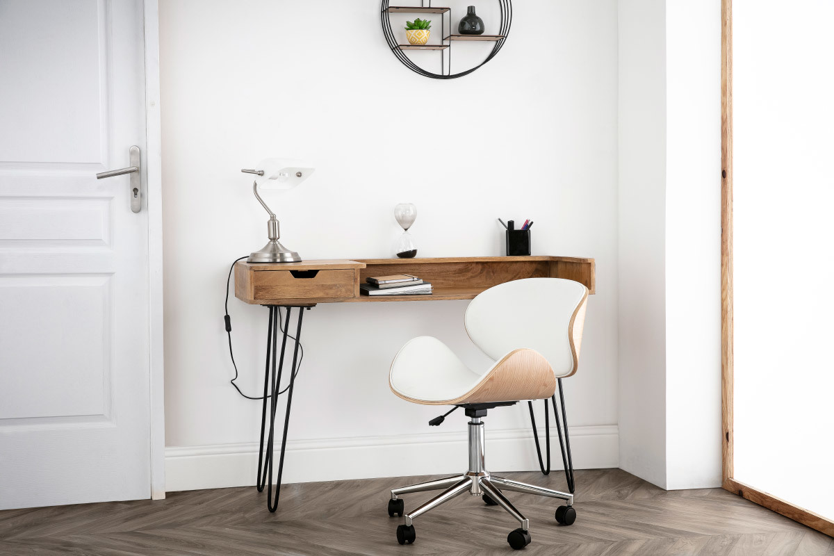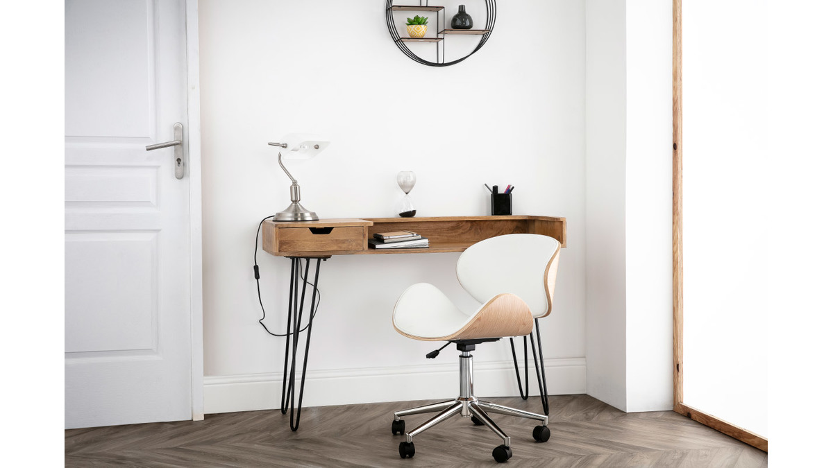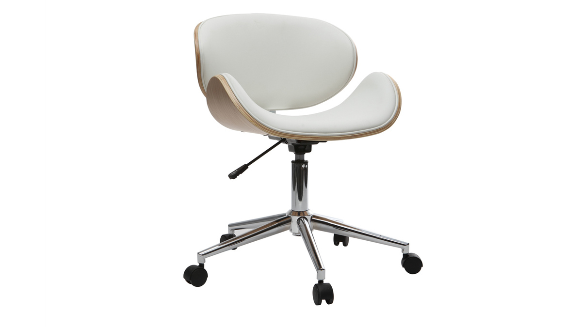 Un look atypique et très design pour cette chaise de bureau blanc et bois clair WALNUT qui allie praticité et confort !