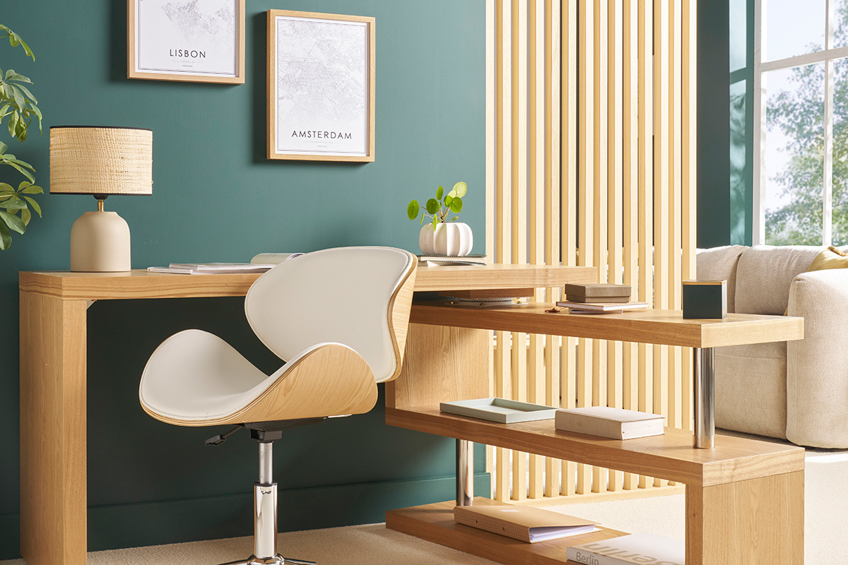 Pour un espace de travail original et design, associez cette chaise de bureau à roulettes WALNUT à un bureau en bois clair !