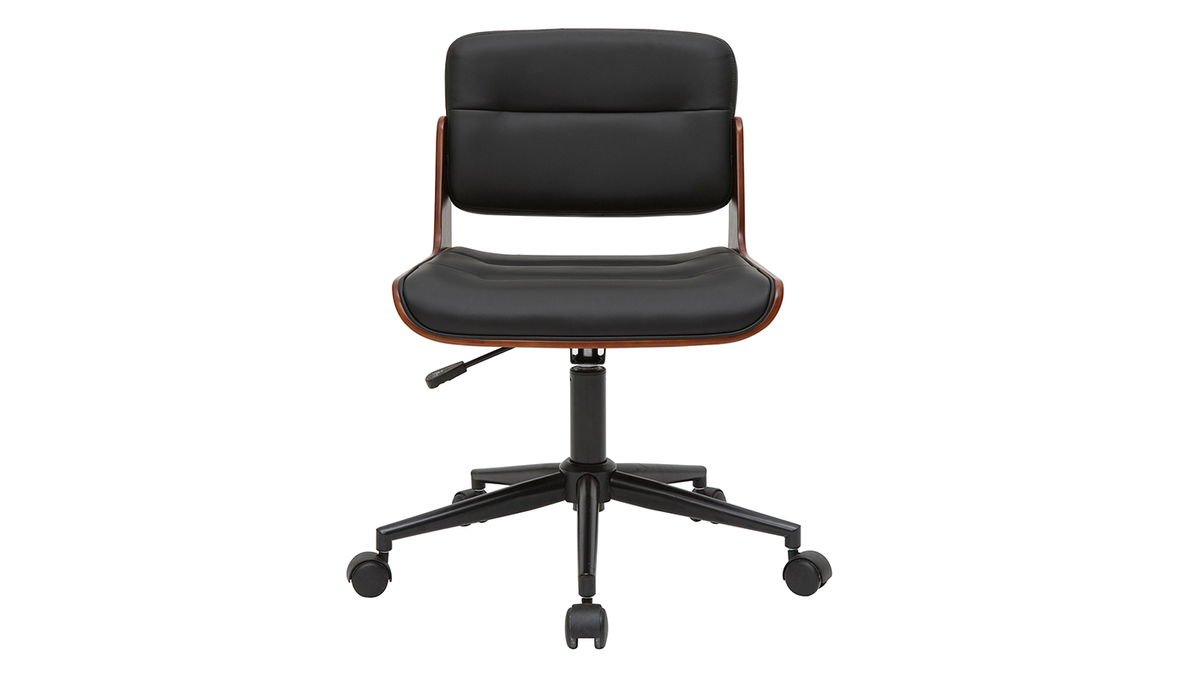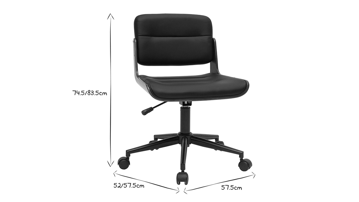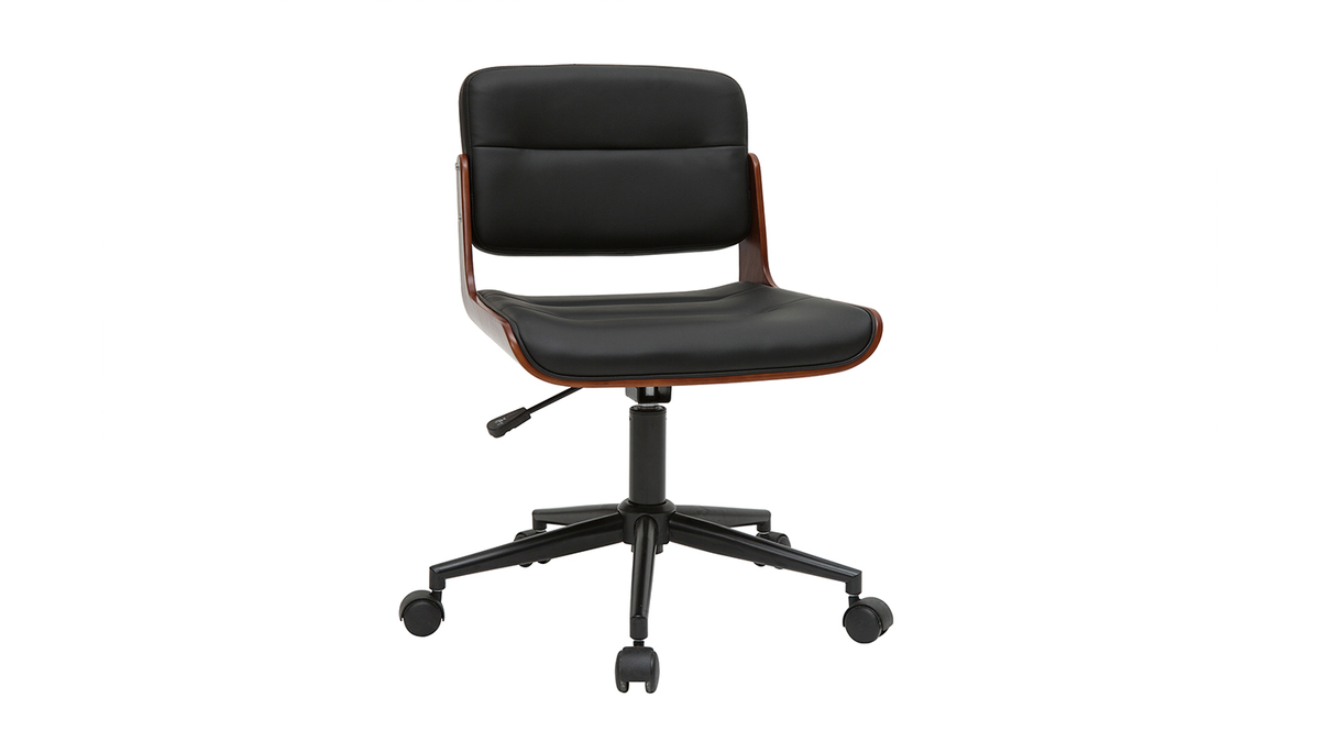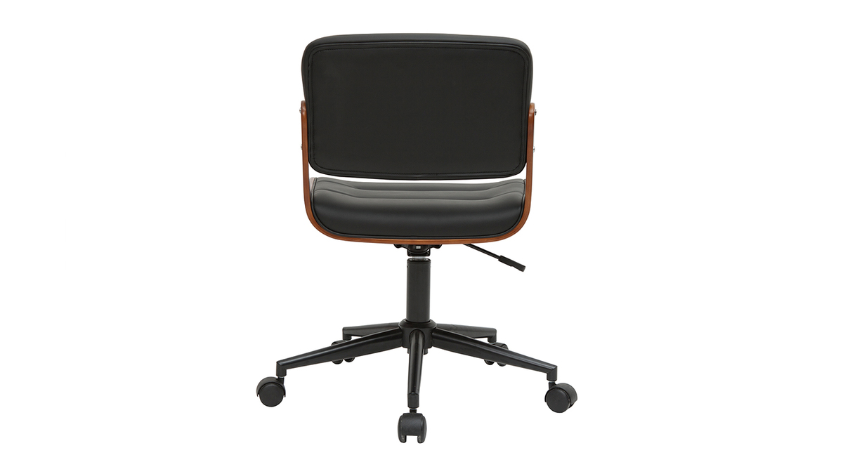 Chaise de bureau à roulettes design noir, bois foncé noyer et métal noir ARAMON livrée prête à assembler.