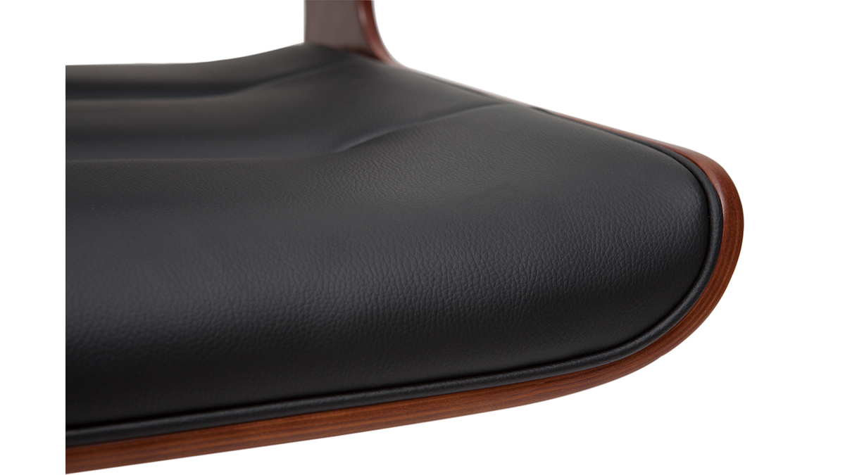 Elle offre un superbe mariage de matières en combinant une assise et un dossier en polyuréthane noir à une belle structure ajourée plaquée noyer. L'ensemble lui confère un look très moderne !