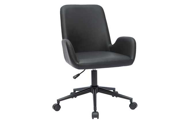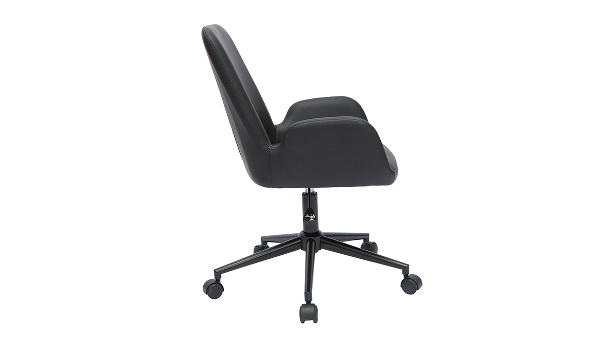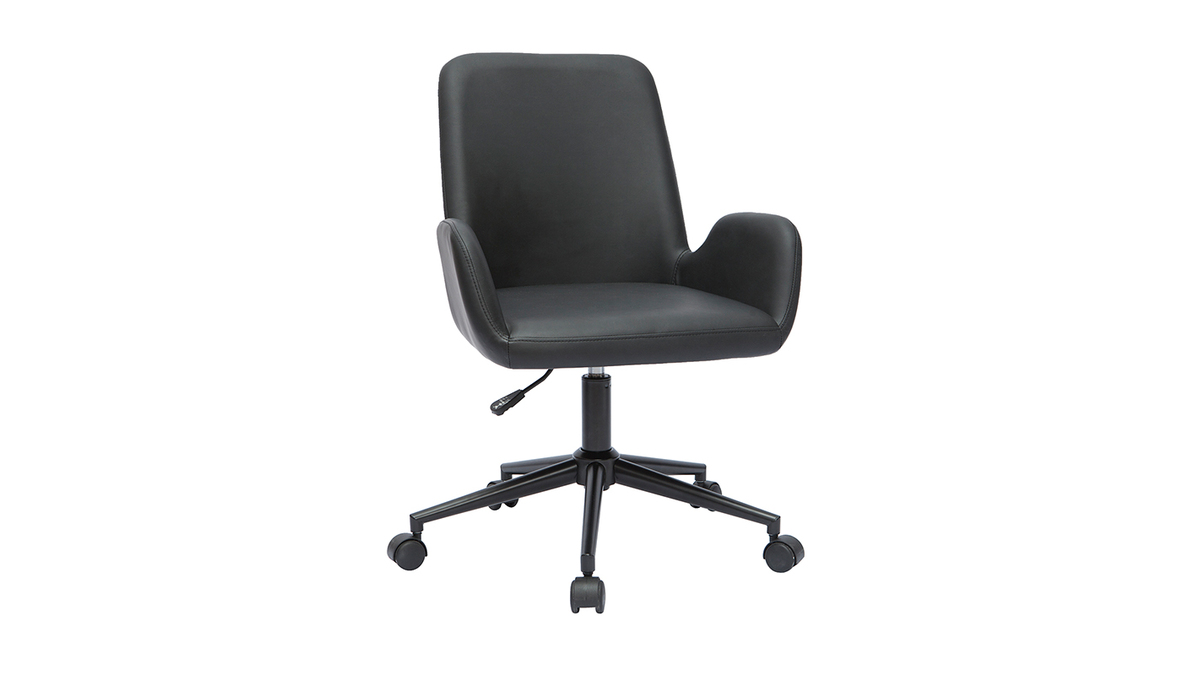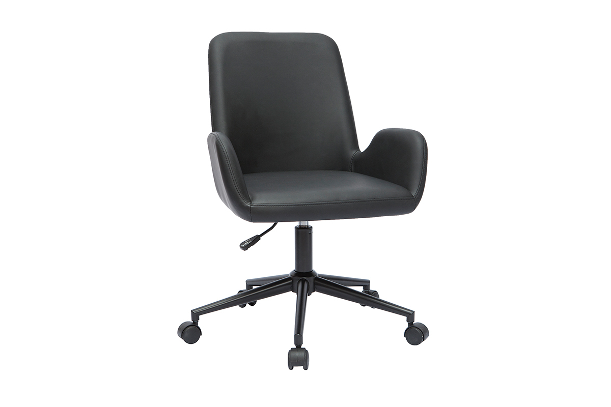 Elle associe une assise en polyuréthane noir à un piétement métallique de la même couleur, deux matières résolument dans l'air du temps. Cette chaise de bureau design mêle ce beau jeu de texture à une silhouette travaillée tout en rondeurs : l'ensemble offre un rendu ultra déco !