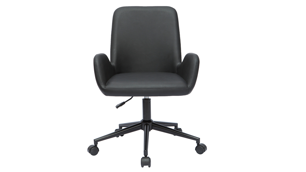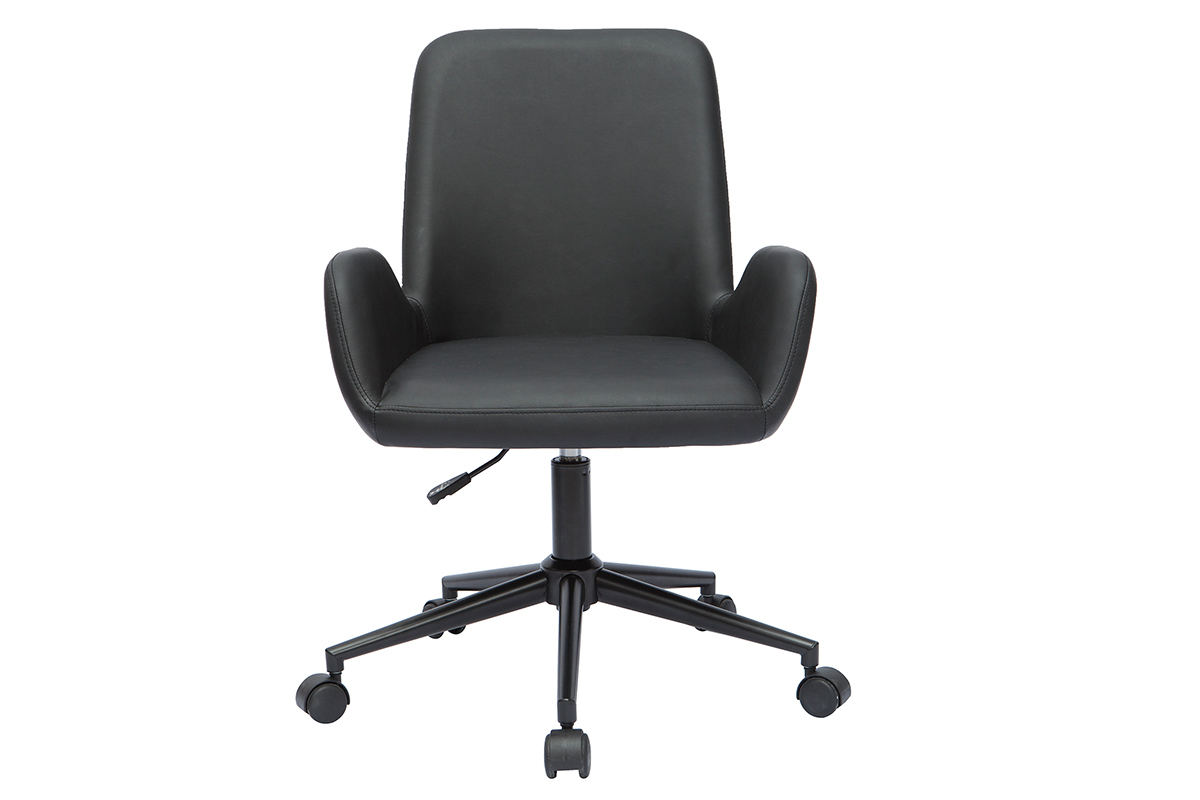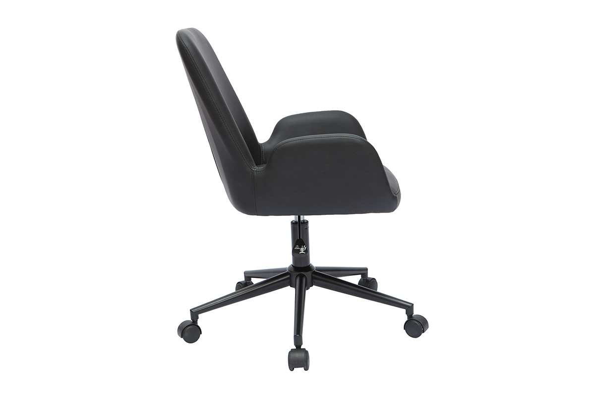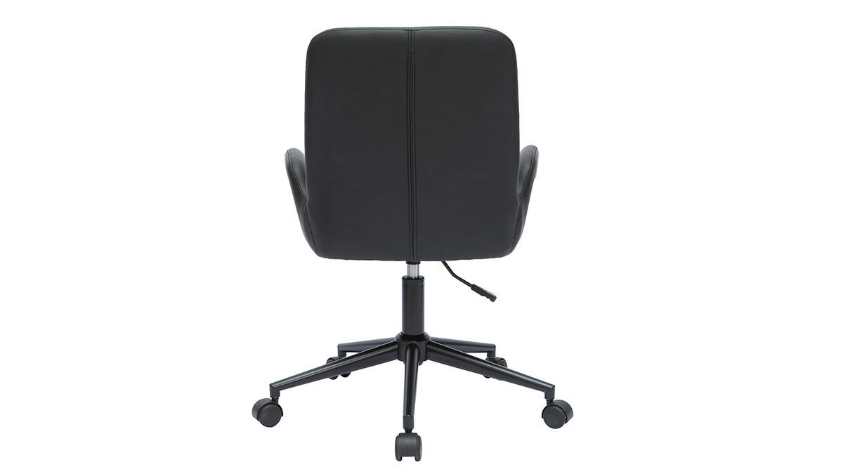Elle associe une assise en polyuréthane noir à un piétement métallique de la même couleur, deux matières résolument dans l'air du temps. Cette chaise de bureau design mêle ce beau jeu de texture à une silhouette travaillée tout en rondeurs : l'ensemble offre un rendu ultra déco !
