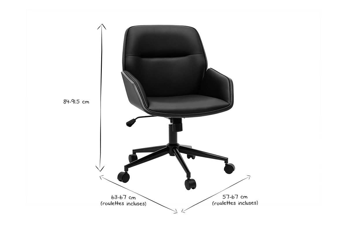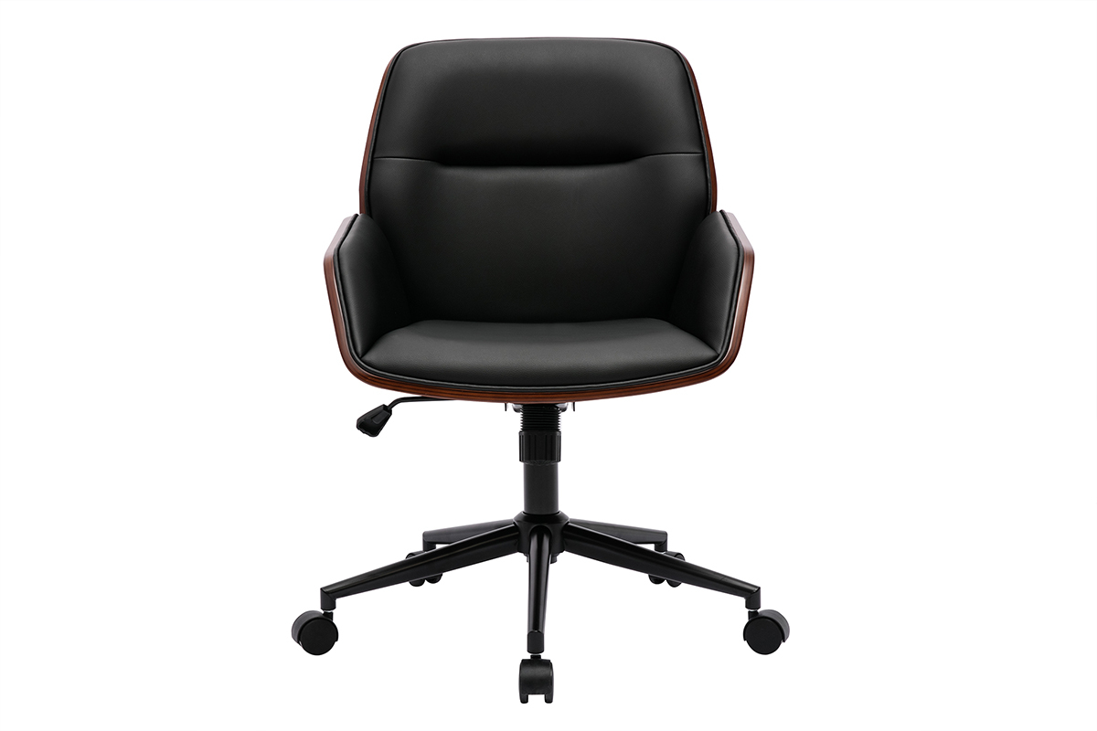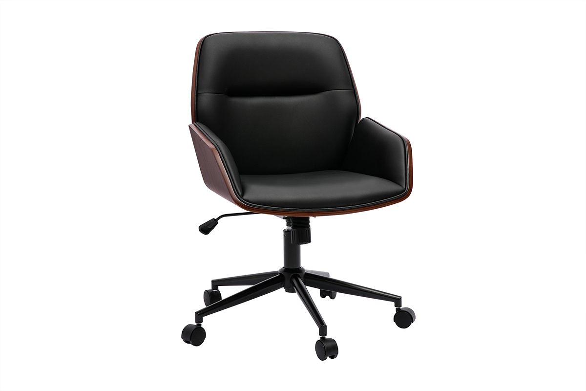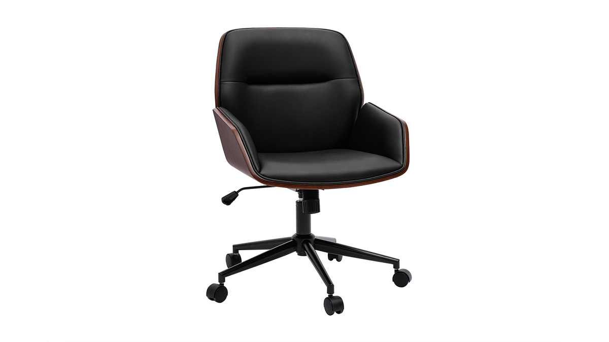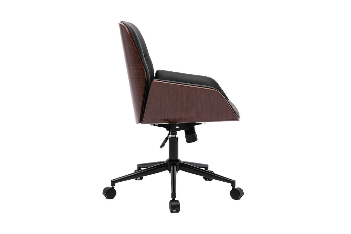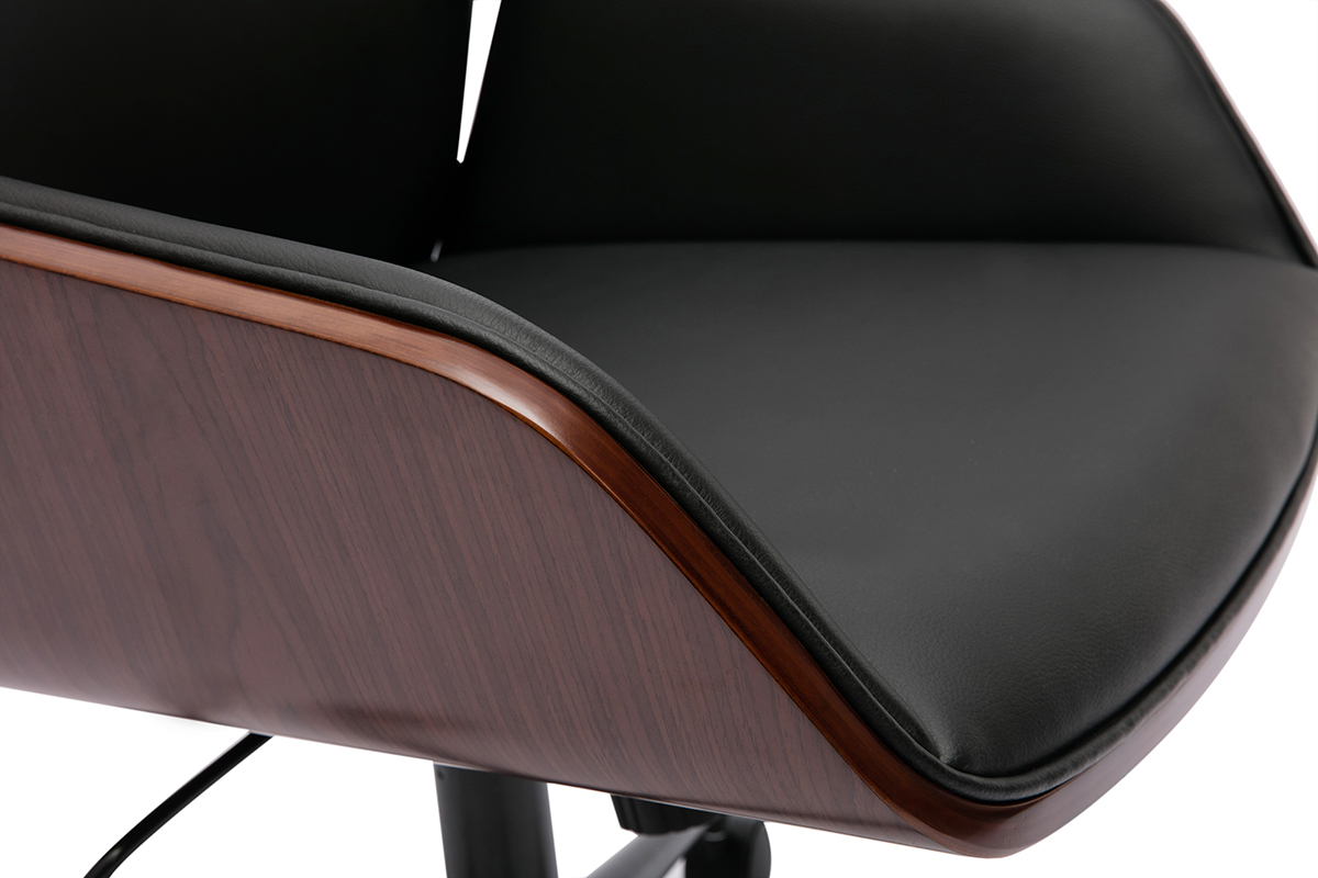 Mêlant bois foncé et polyuréthane noir, cette chaise de bureau moderne joue habilement avec les matières pour offrir un look à l'harmonie parfaite. Ses jolis tons épurés s'associent à des lignes tout en finesse, faisant d'elle une chaise de bureau très design.