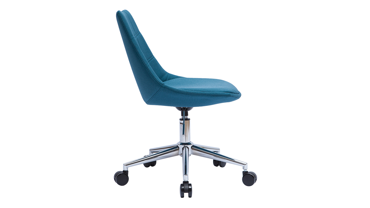 Chaise de bureau en tissu bleu canard et acier chromé MATILDE