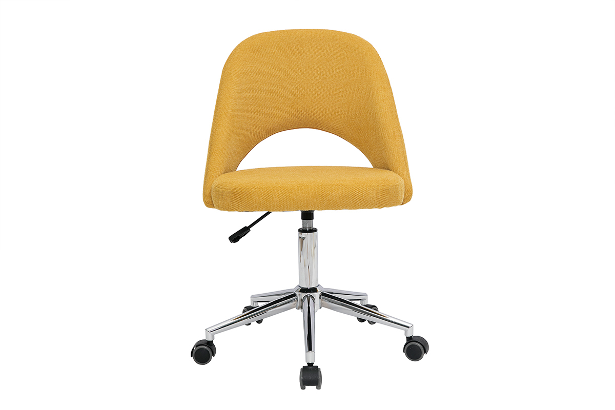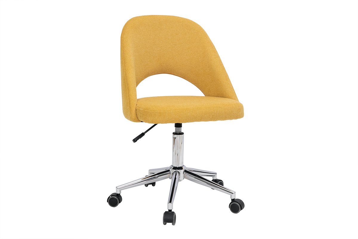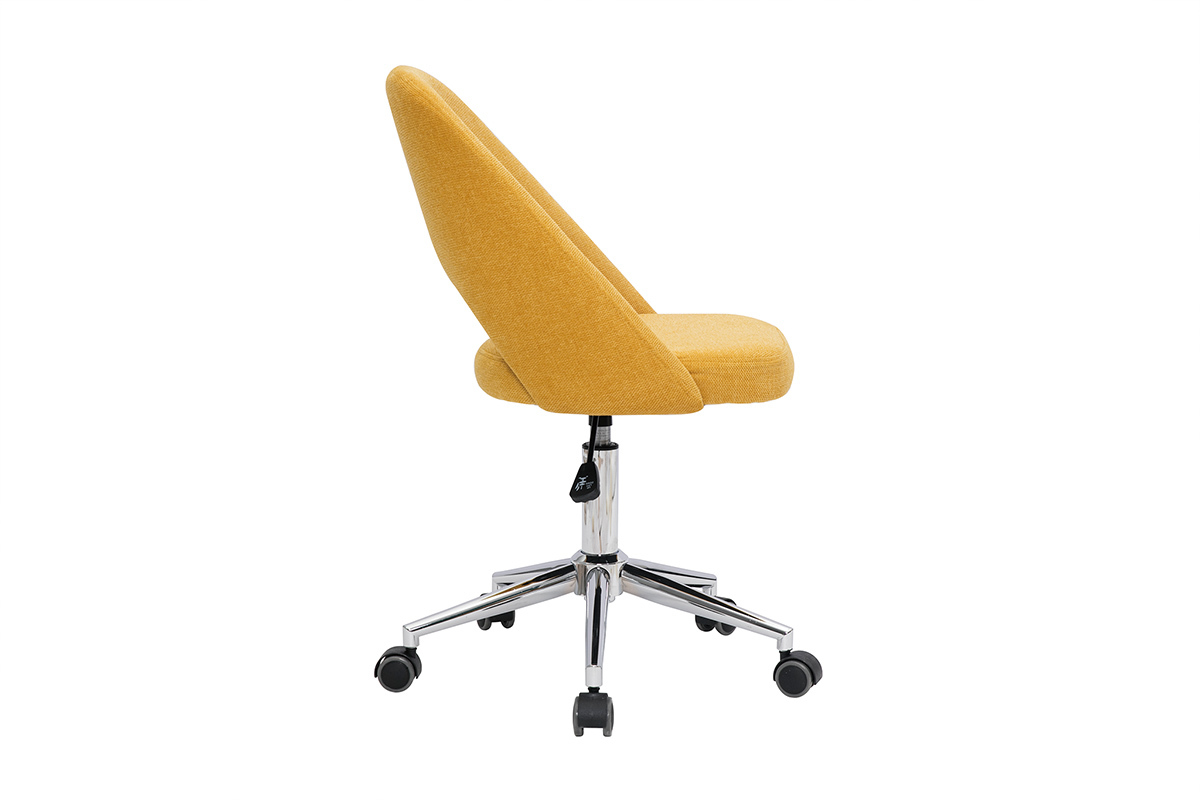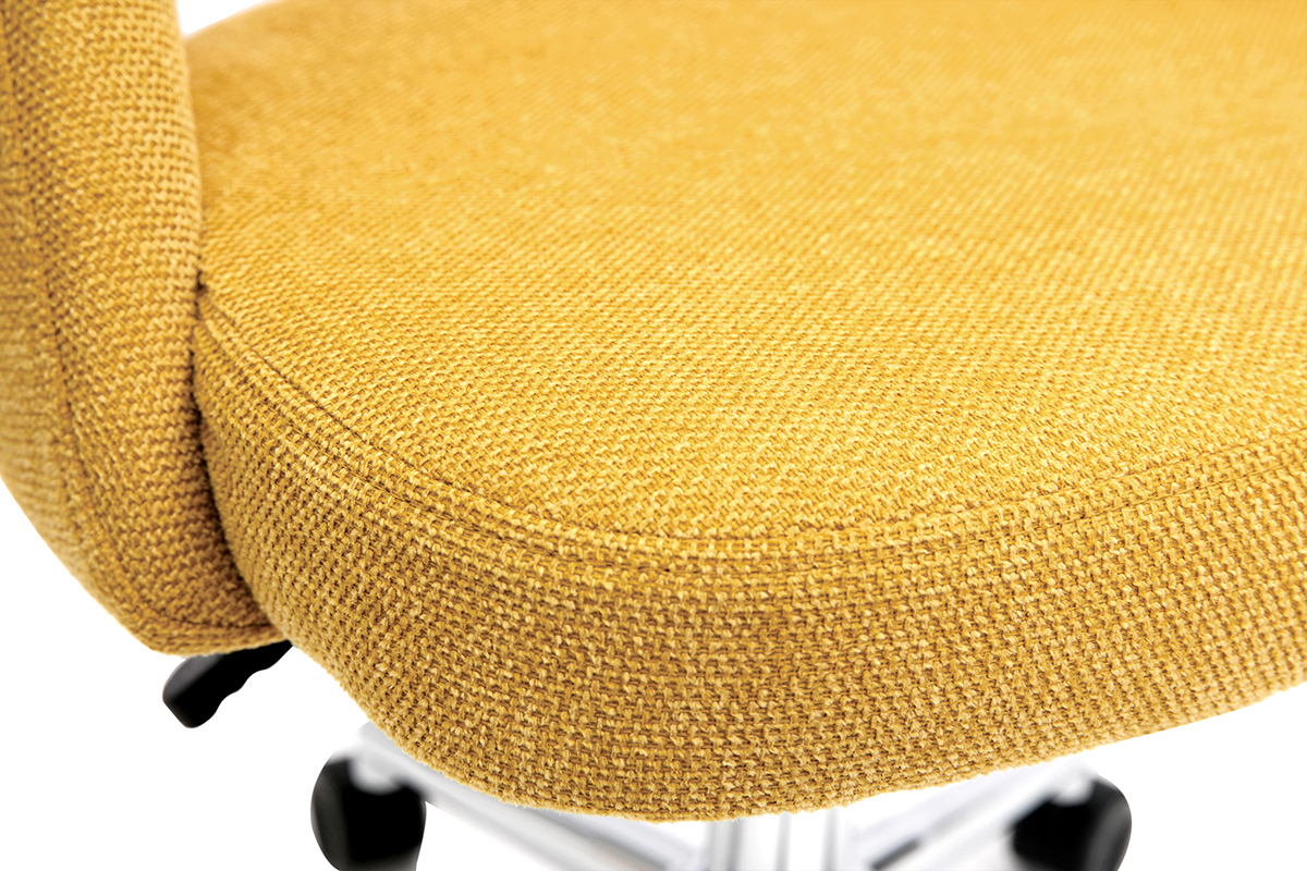 Avec ses lignes fluides et son joli tissu effet velours texturé (100% polyester), la chaise de bureau COSETTE conjugue style et confort. Son dossier enveloppant soutient les lombaires et sa coque généreusement rembourrée (densité de la mousse 25 kg/m3) offre tout le confort nécessaire à la création. On aime la douceur de son revêtement et son coloris jaune moutarde lumineux et chaleureux.