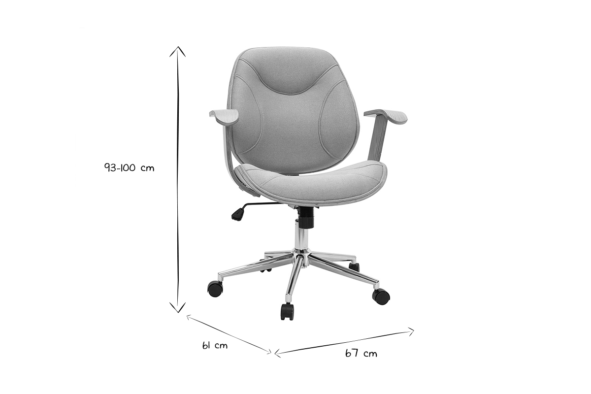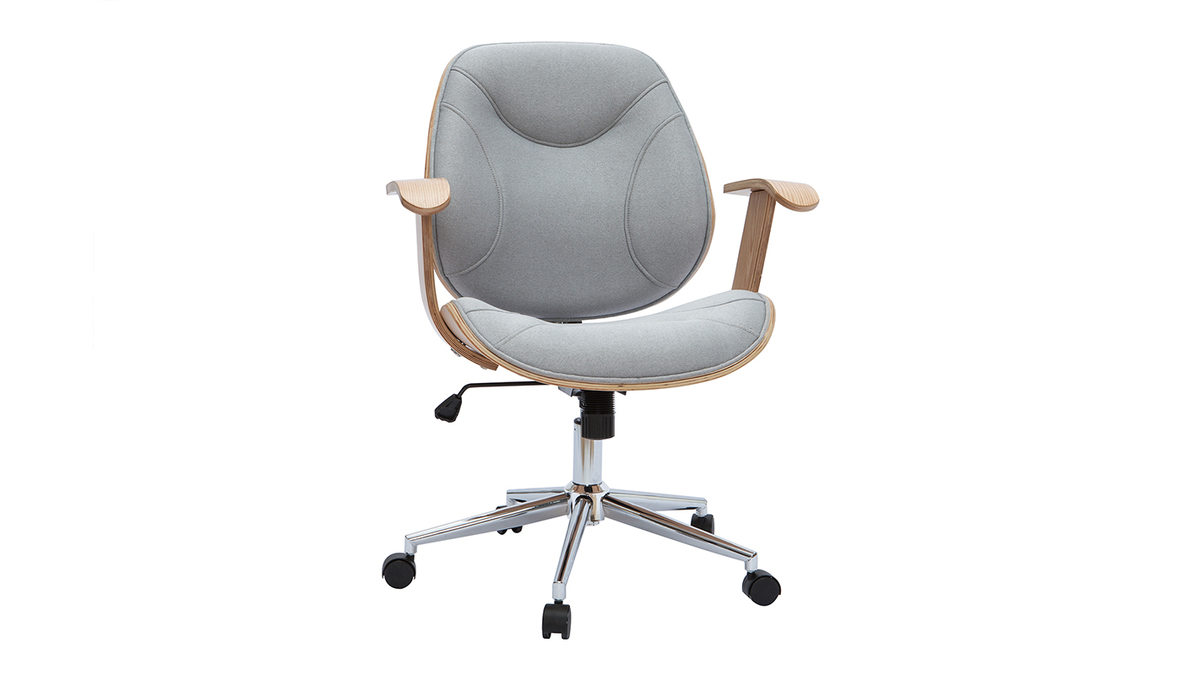 Pour un espace de travail au confort optimal, dossier et assise ont été rembourrés et des accoudoirs ont été ajoutés. Le piètement en métal chromé est équipé de cinq roulettes assurant une parfaite mobilité. La hauteur d'assise est réglable entre 47 et 54 cm et s'adapte ainsi à toute la maisonnée. Cette chaise de bureau design est pivotante.
