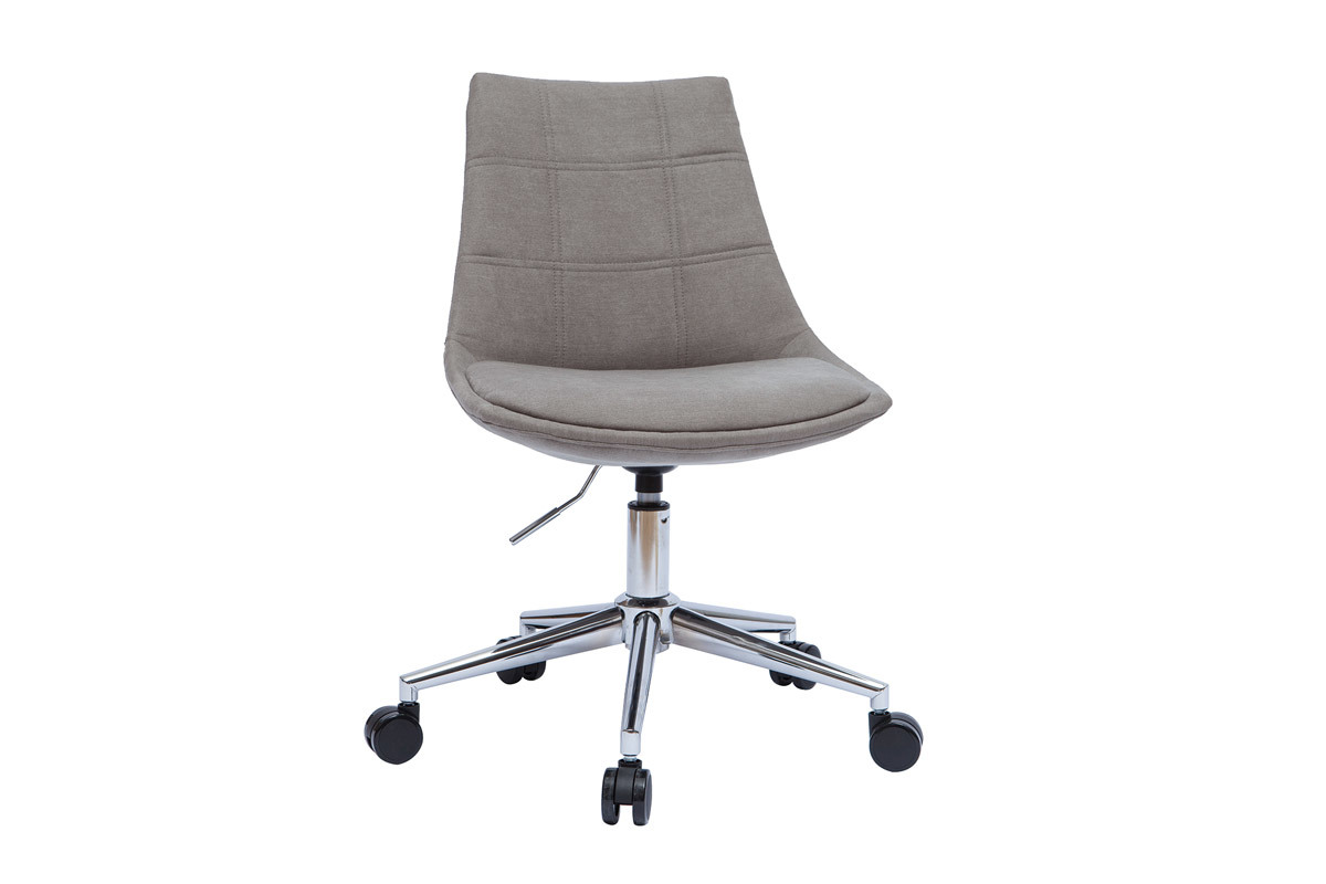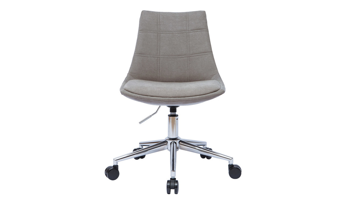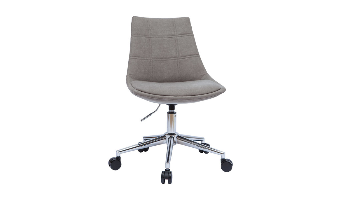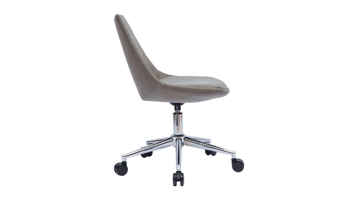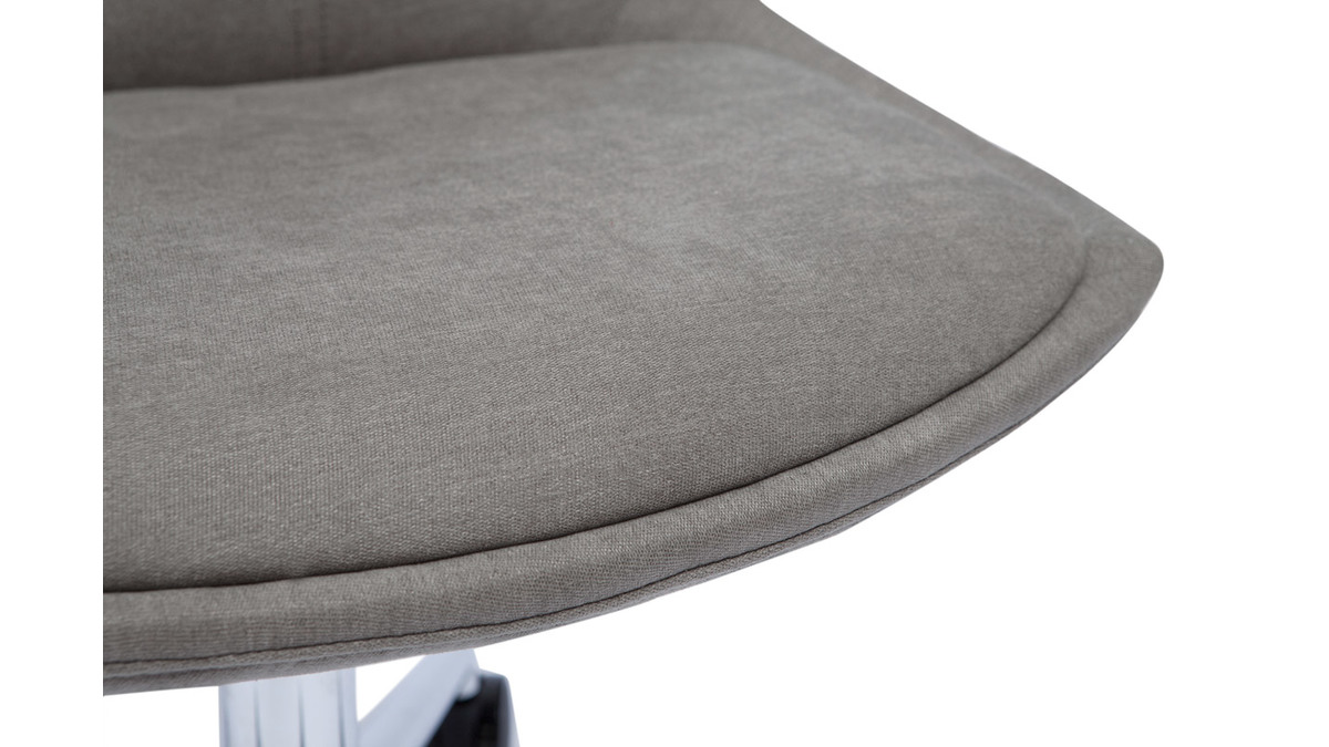 Tout a été travaillé pour faire de la chaise de bureau à roulettes MATILDE une assise aussi soignée que décontractée. Son tissu polyester gris clair, ses lignes fluides et son piètement en métal chromé lui donnent une allure folle !