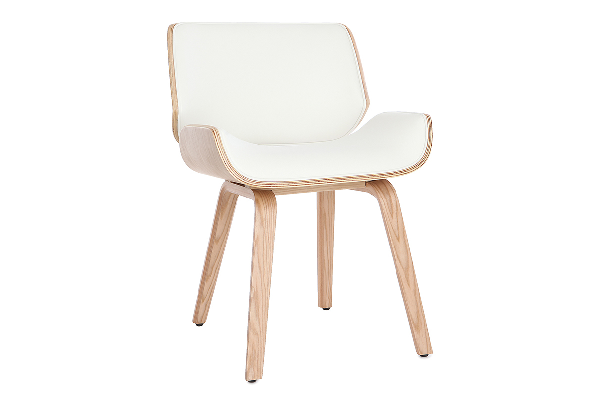 Mélange de courbes et de lignes franches, cette chaise blanche et bois clair est un objet déco à part entière. Sa forme est inspirée du design scandinave et des pièces vintage pour un intérieur au charme authentique.