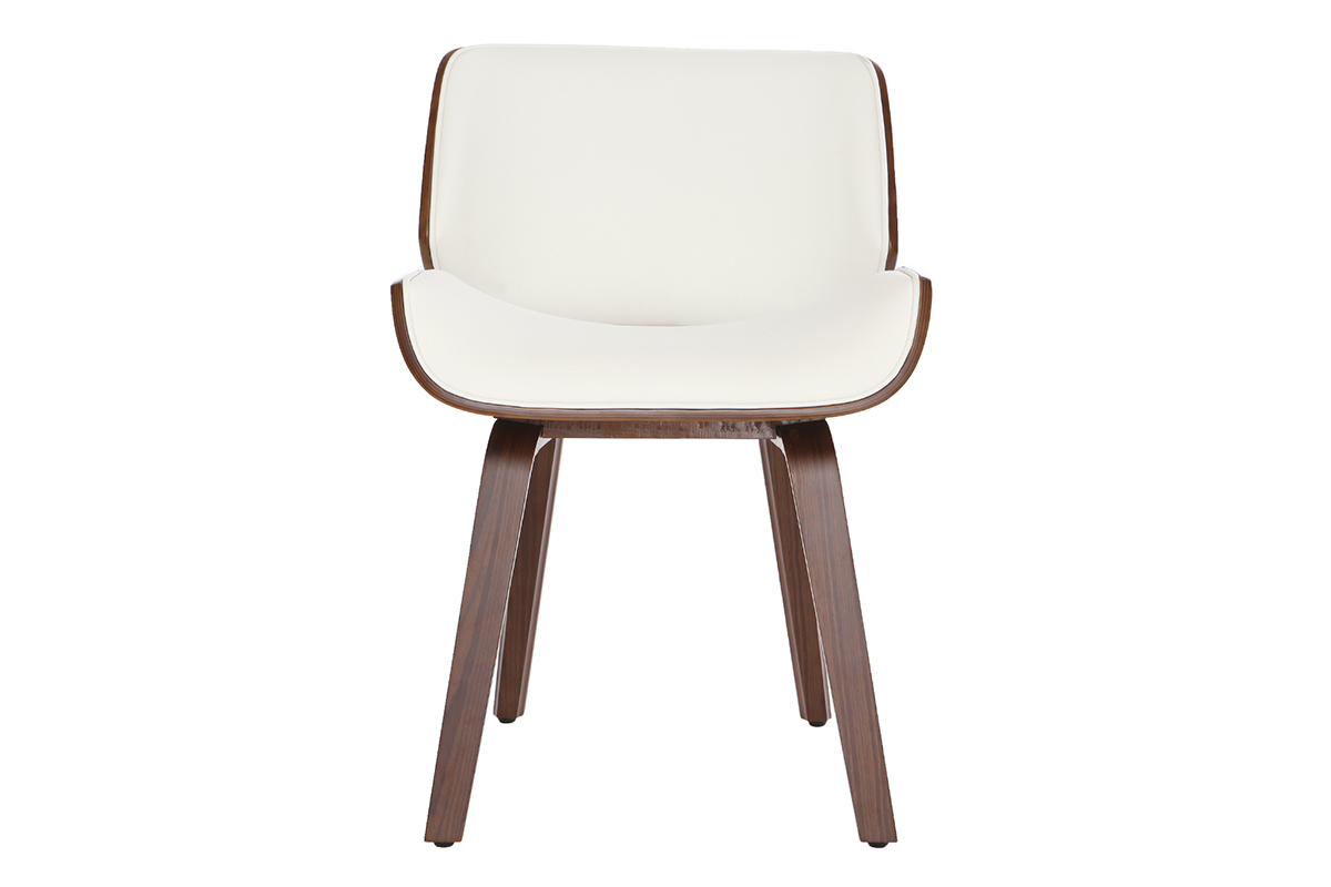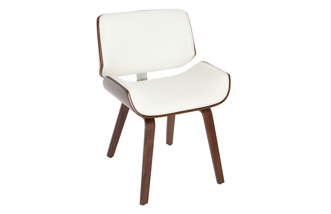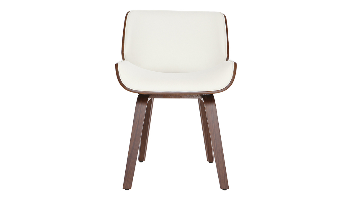 Mélange de courbes et de lignes franches, cette chaise blanche et bois foncé est un objet déco à part entière. Sa forme est inspirée du design scandinave et des pièces vintage pour un intérieur au charme authentique.
