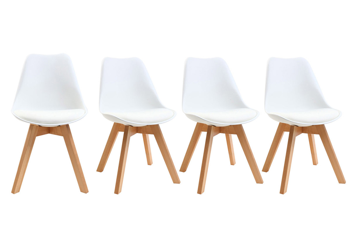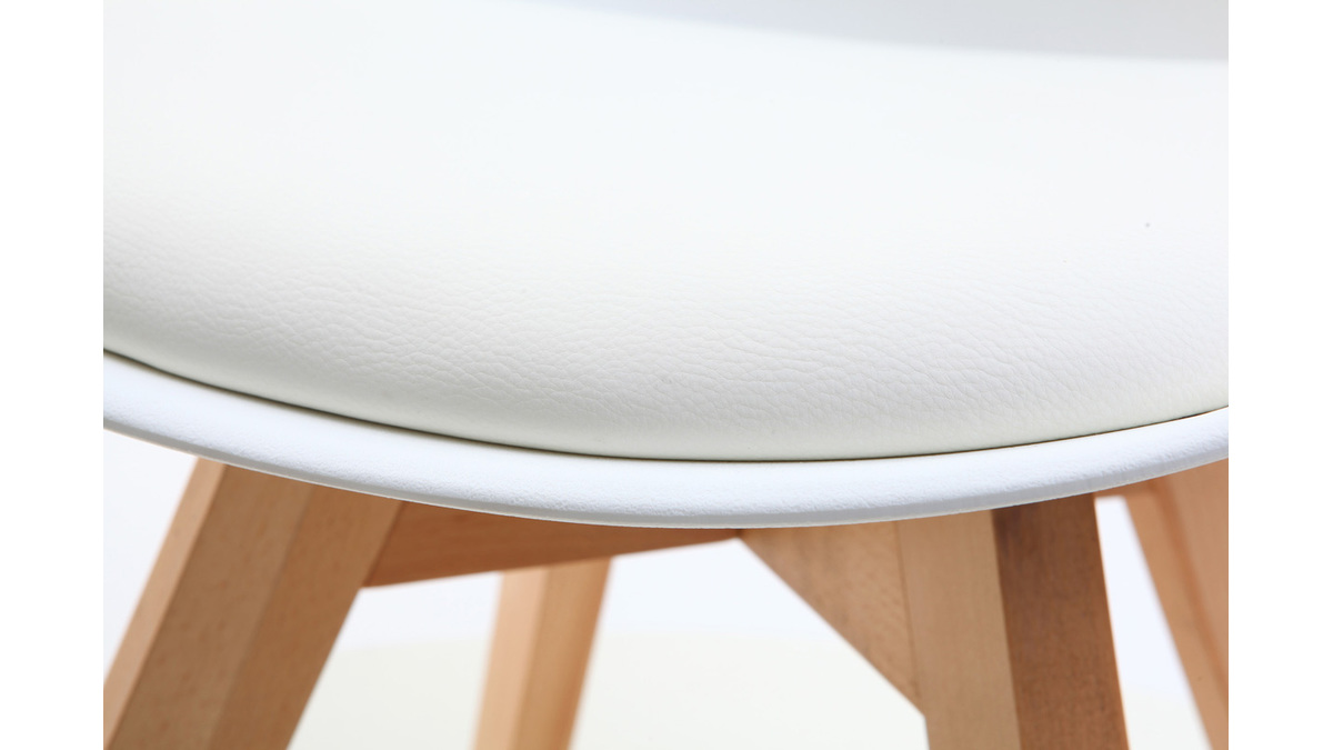Contraste entre bois hêtre massif, structure en polypropylène et revêtement en polyuréthane, ces chaises scandinaves au look contemporain sont idéales pour apporter une touche de modernité à une table en bois. Les pieds en bois clair qui composent ces chaises blanches permet de faire de la salle à manger un endroit chaleureux et convivial tout en garantissant leur solidité.