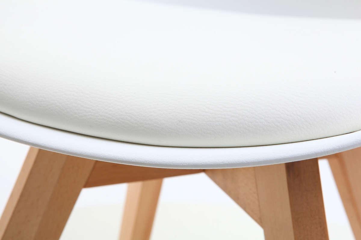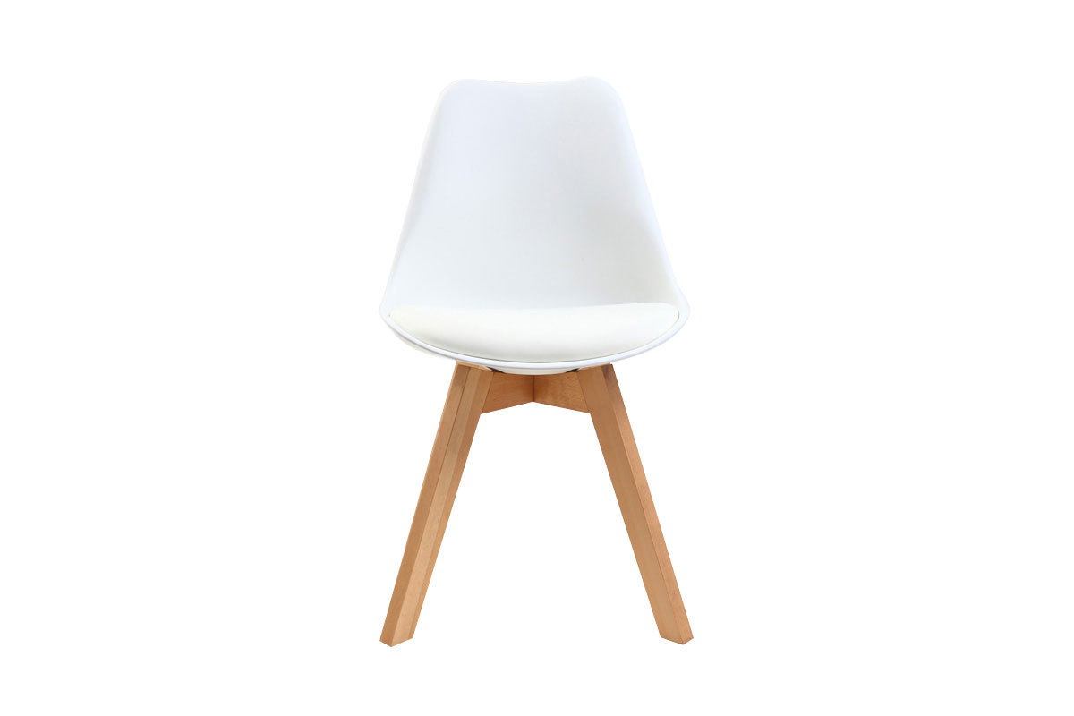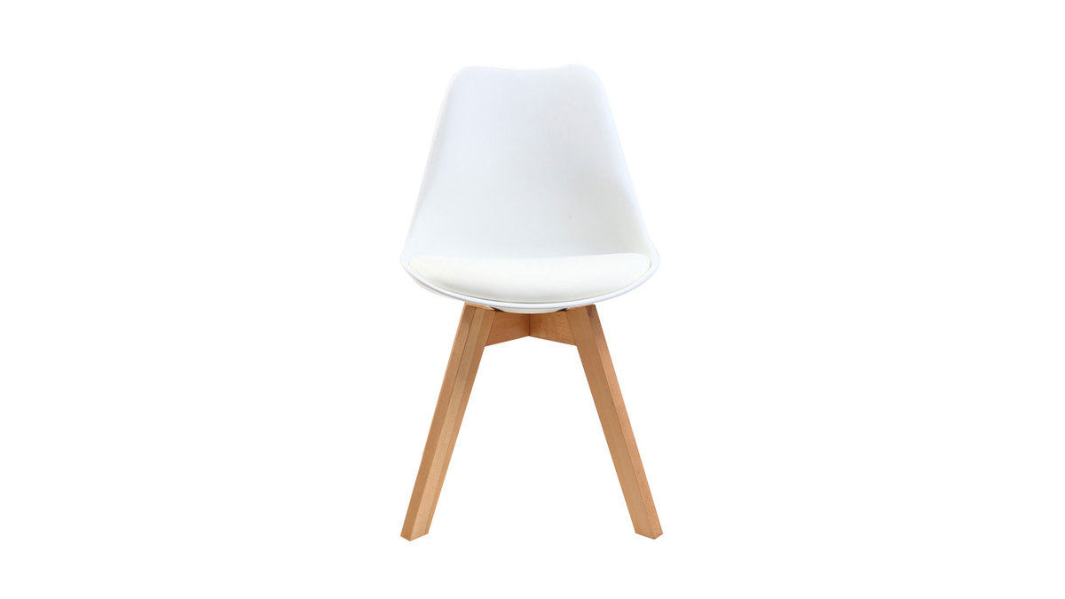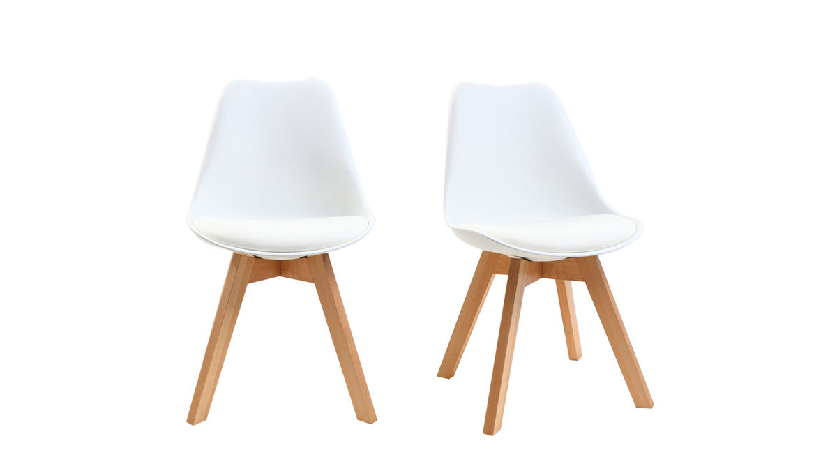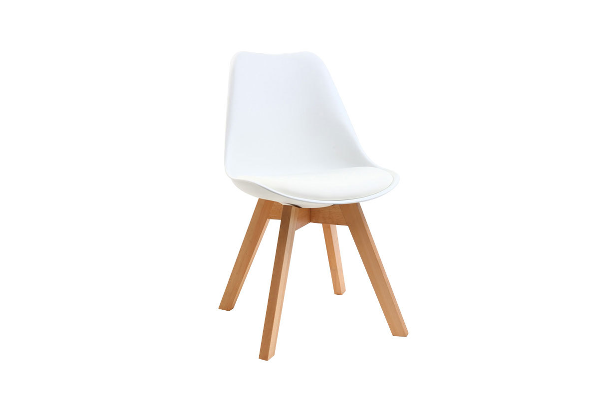 Les lignes des assises en polypropylène, très facile d'entretien, se marient extrêmement bien avec le design du piètement évasé. Ces chaises blanches avec pieds bois clair seront parfaites dans un intérieur moderne associées à une table à manger qui mêle influences nordiques et style contemporain.