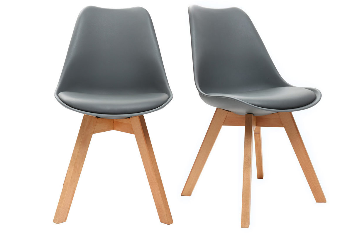 Les lignes des assises en polypropylène, très facile d'entretien, se marient extrêmement bien avec le design du piètement évasé. Ces chaises grises avec pieds bois clair seront parfaites dans un intérieur moderne associées à une table à manger qui mêle influences nordiques et style contemporain.
