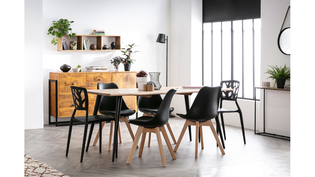 Ces chaises noir et bois clair, seront parfaites dans un intérieur en quête de modernité, associées à une table à manger en bois, les PAULINE apporteront une note chaleureuse et design à votre coin repas.