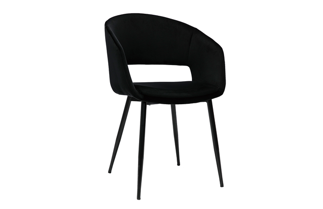 Cette chaise maîtrise avec justesse courbes vintage et design tendance. Le siège tout en rondeur s'habille d'un velours noir, une matière douce et chaleureuse plébiscitée des intérieurs raffinés et cosy. Un clin d'oeil glamour modernisé par le piètement fuselé noir et l'originalité du dossier ajouré. Avec son look monochrome, on l'imagine parfaitement dans une pièce de vie à la déco rétro chic.