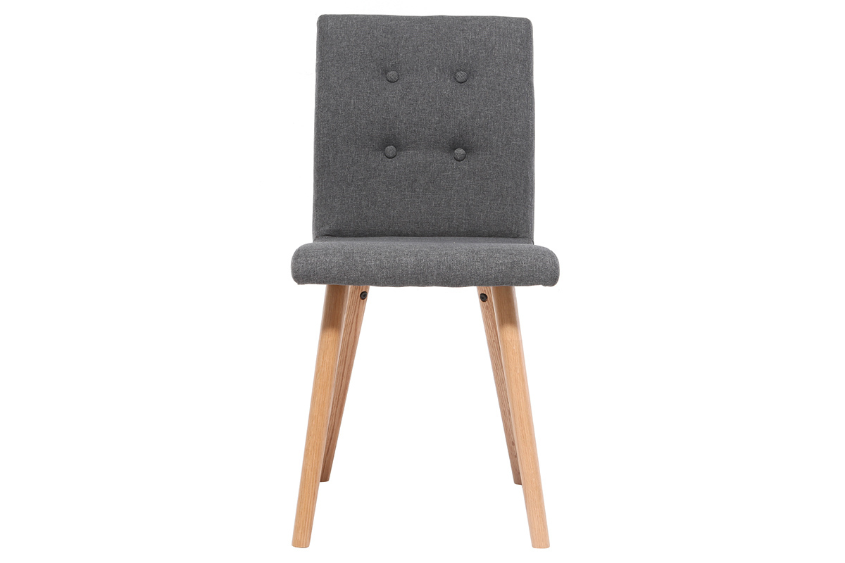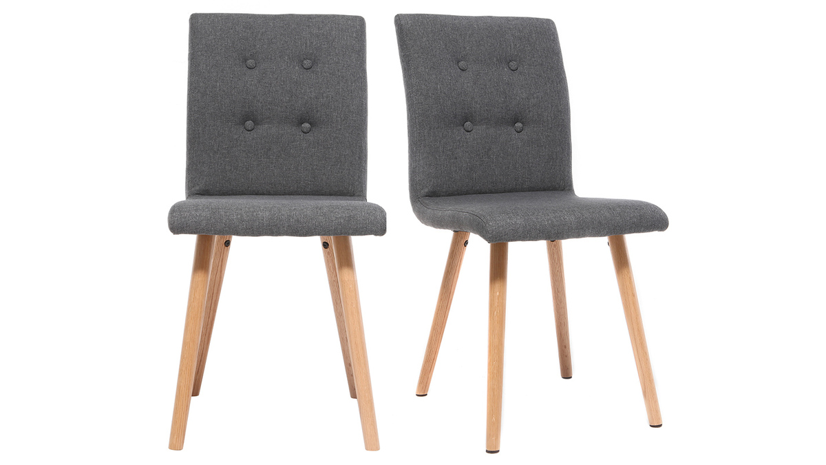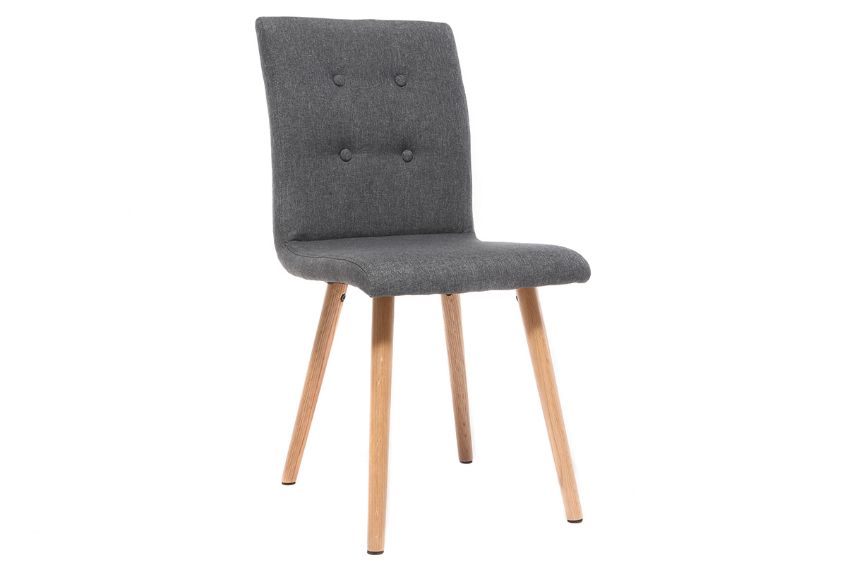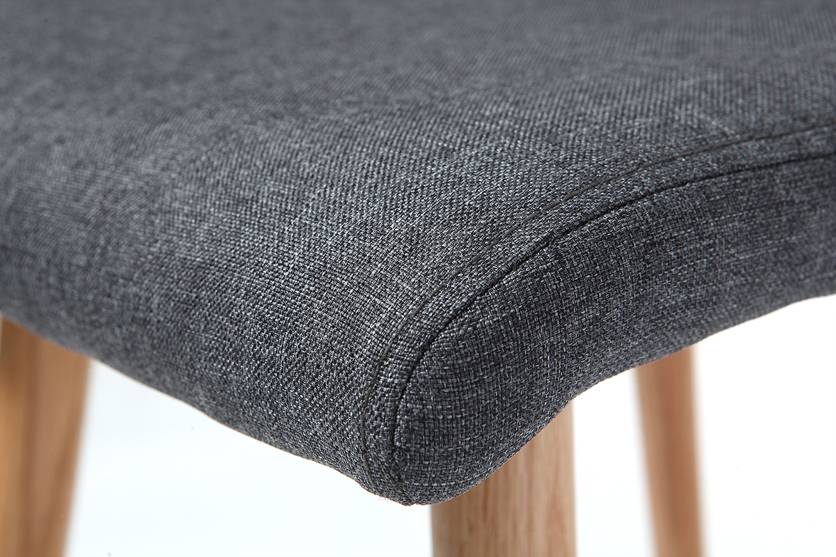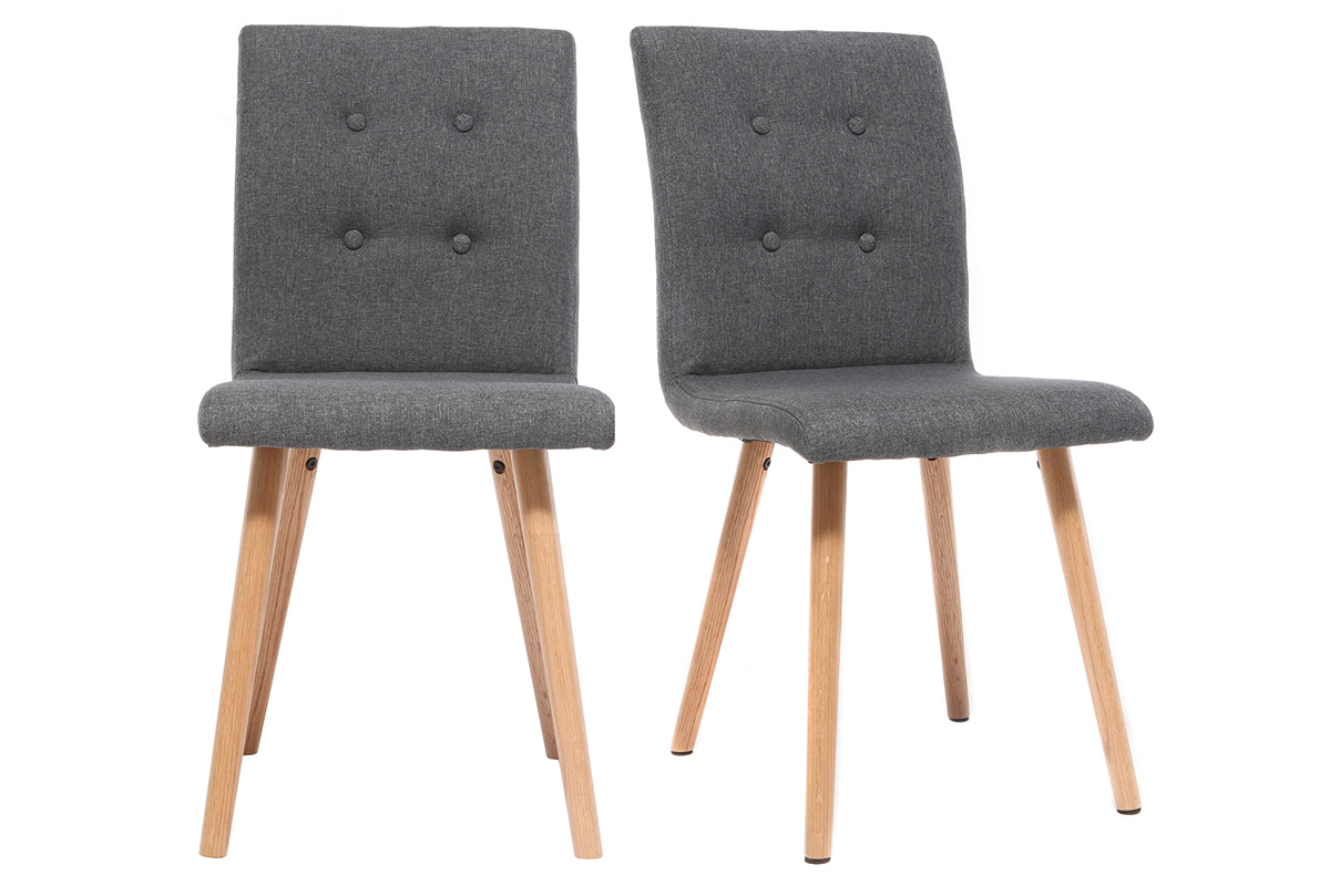 Contraste de bois clair et de tissu gris foncé, ce modèle de chaise de salle à manger est signée d'une élégante simplicité. Pieds en bois clair hêtre massif et revêtement capitonné en tissu gris chiné (100% polyester) forment doux et sobre.
