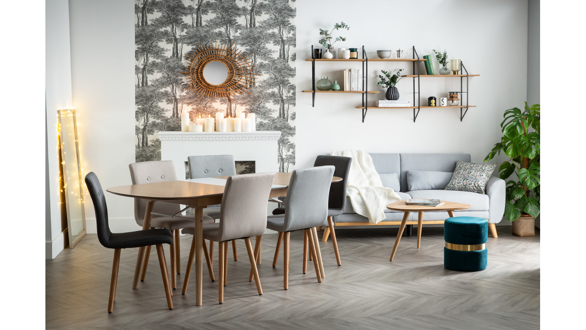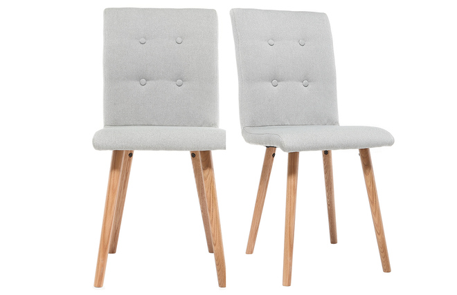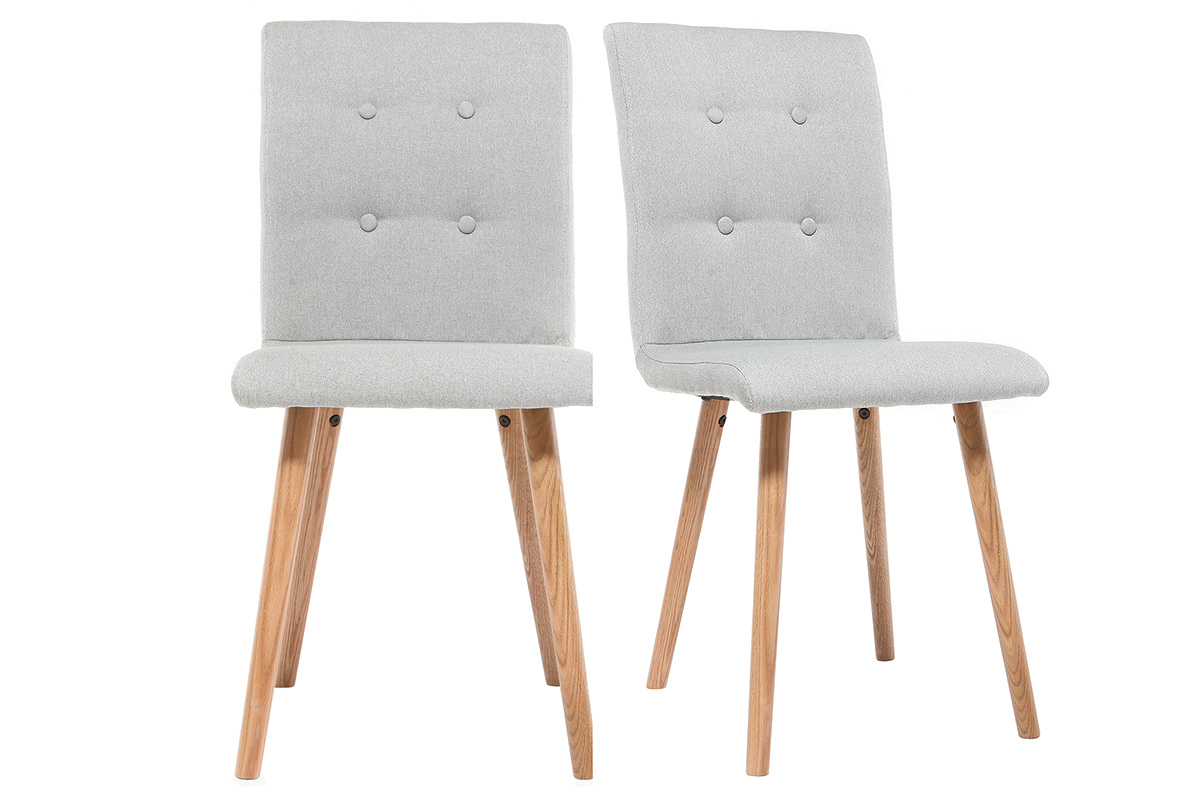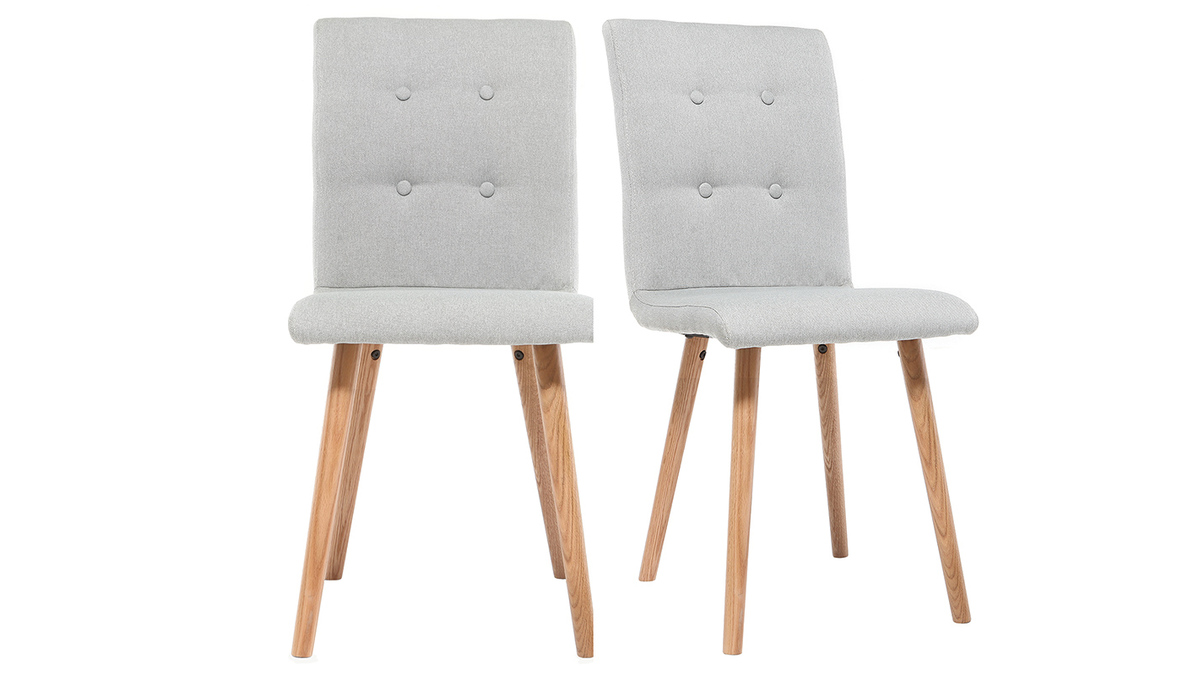 Contraste de bois clair et de tissu gris clair, ce modèle de chaise de salle à manger est signée d'une élégante simplicité. Pieds en bois clair hêtre massif et revêtement capitonné en tissu gris clair (100% polyester) forment doux et sobre.
