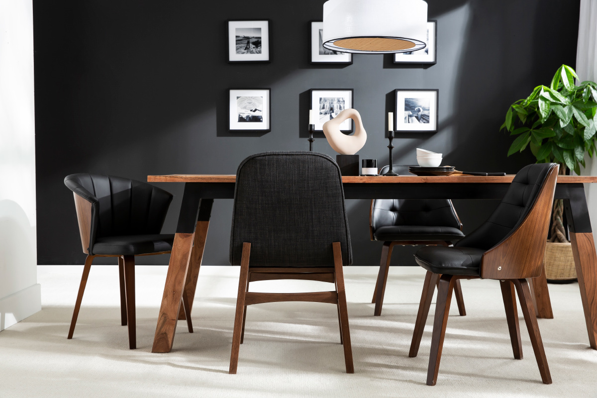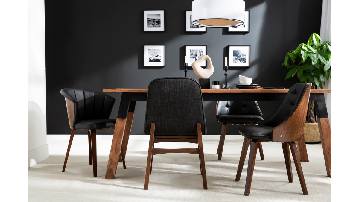 Chaise design noir et bois foncé noyer ALBIN livrée prête à assembler.
