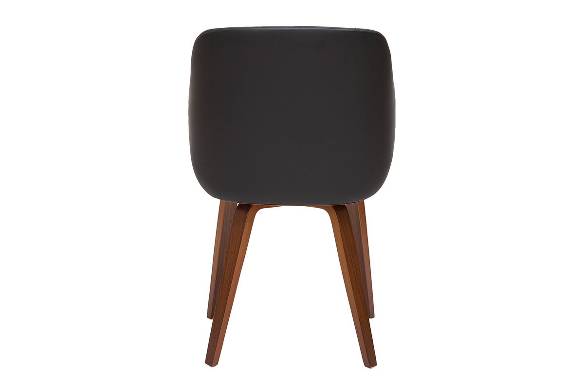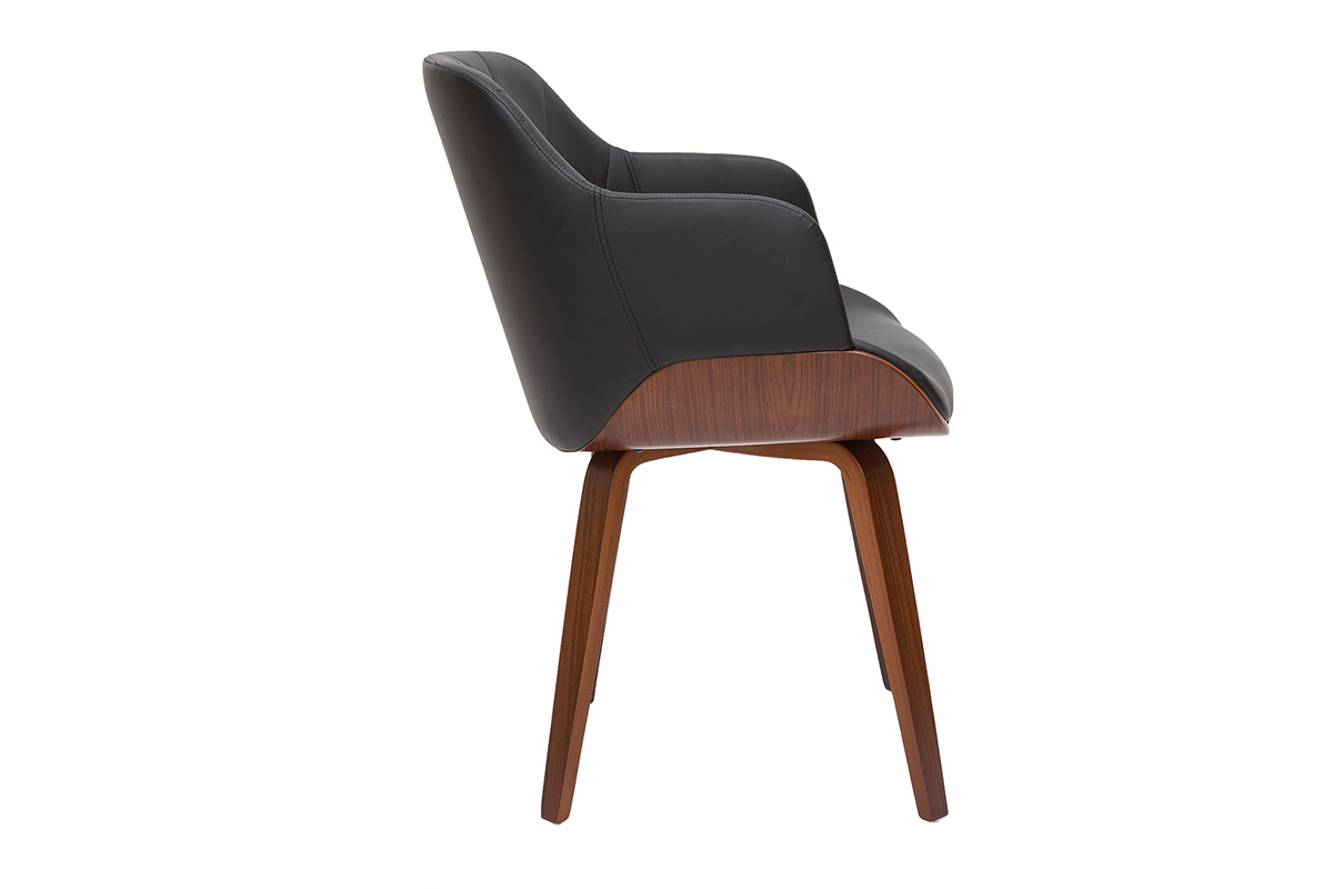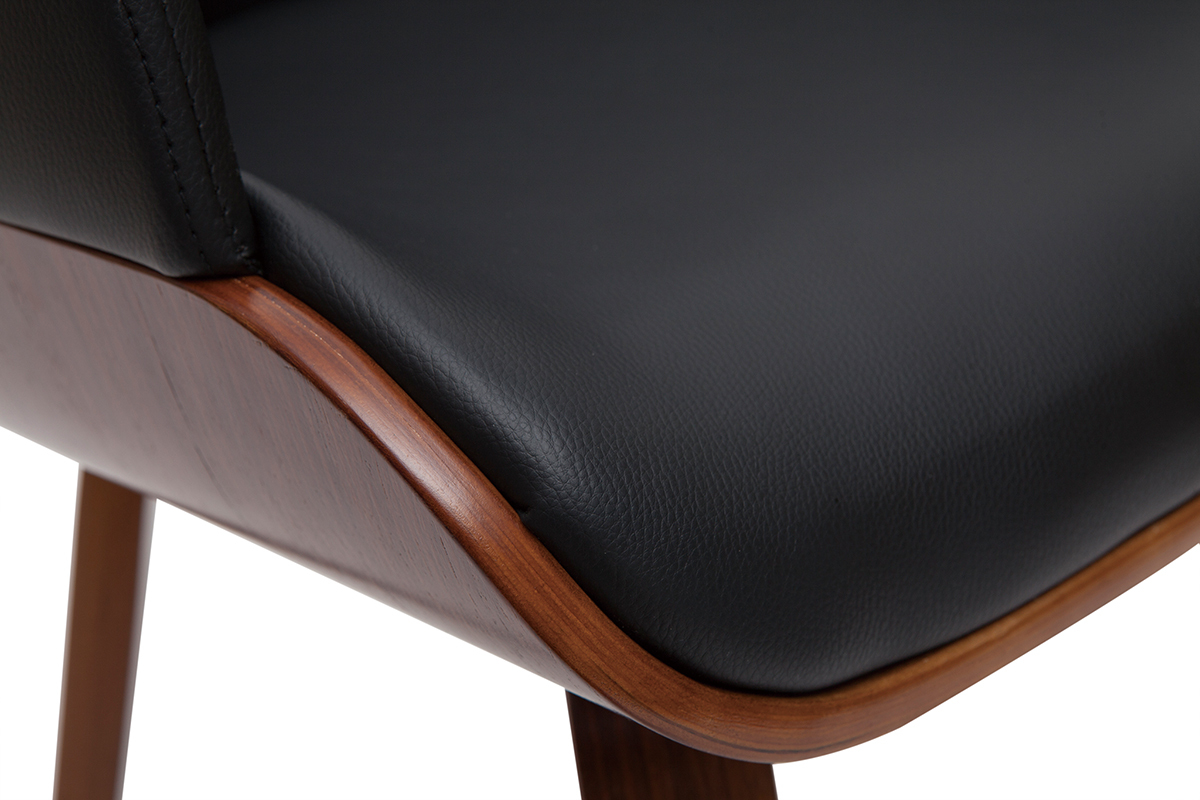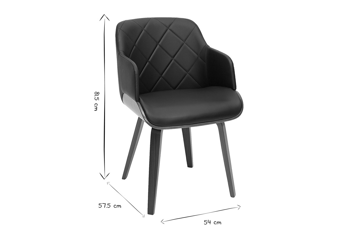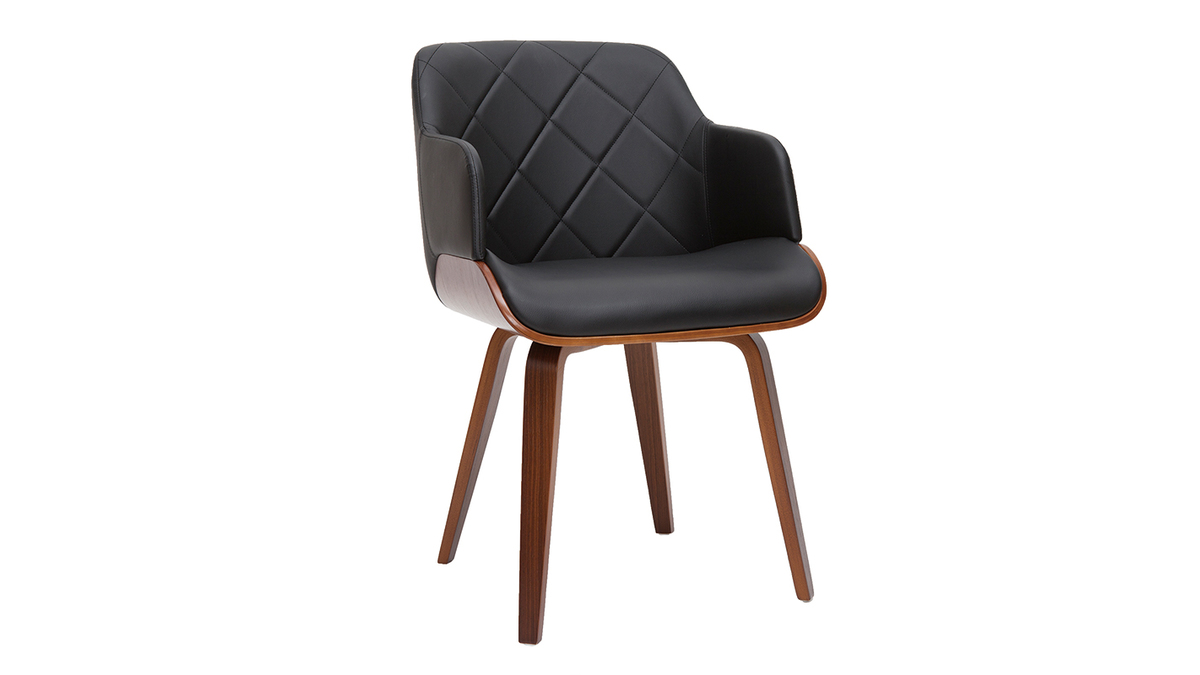 Parfait mélange entre polyuréthane noir et bois foncé, cette chaise dans l'air du temps ne manquera pas de sublimer votre salle à manger. Joli dossier matelassé et silhouette moderne façonnent cette chaise en pièce de mobilier hyper branchée ! Cette chaise avec accoudoirs au faux airs de fauteuil sera l'élément clé pour apporter une belle touche d'élégance et de chaleur dans la pièce.