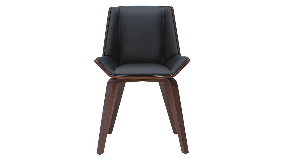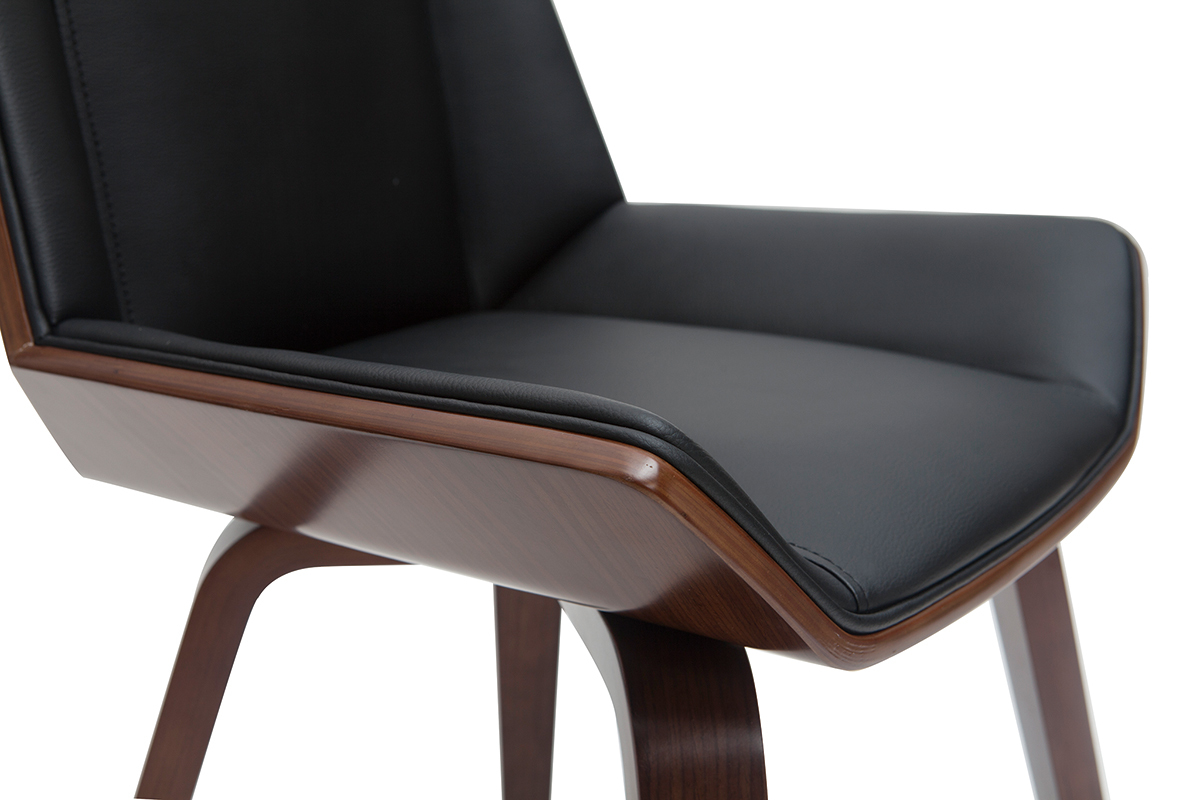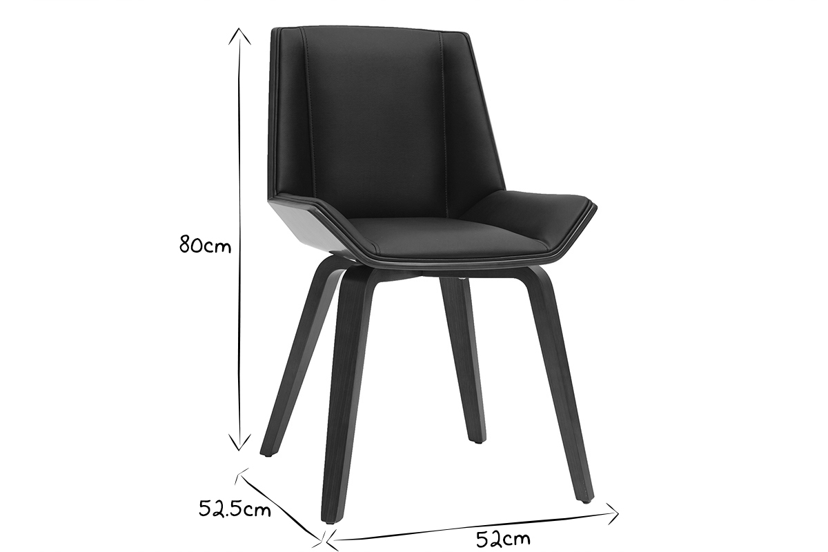Dossier et assise ont été travaillés pour offrir tout le confort nécessaire. On apprécie particulièrement leur garnissage de mousse et leur forme enveloppante. Facile d'entretien et confortable, cette chaise noire et bois foncé est la parfaite alliée pour des repas quotidiens bien installé.