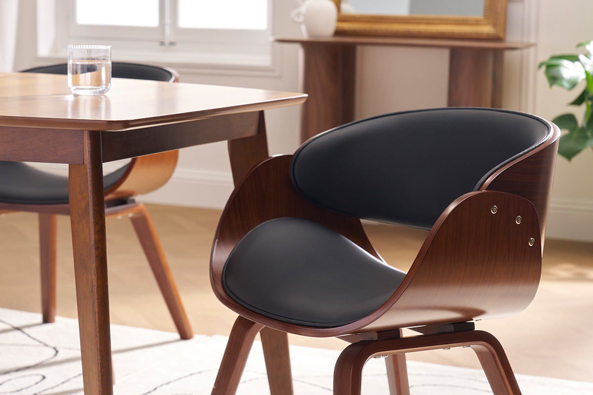 Le modèle BENT se renouvelle avec la version chaise design au look scandi-rétro très tendance.Tout aussi confortable que le fauteuil de bureau ou la chaise haute, la chaise BENT est composée d'un piètement et d'un dossier en bois laissant apparaître les veines du bois pour un rendu des plus authentiques. Son style, un savoureux mélange de scandinave et de vintage, saura vous combler par ses courbes atypiques.
