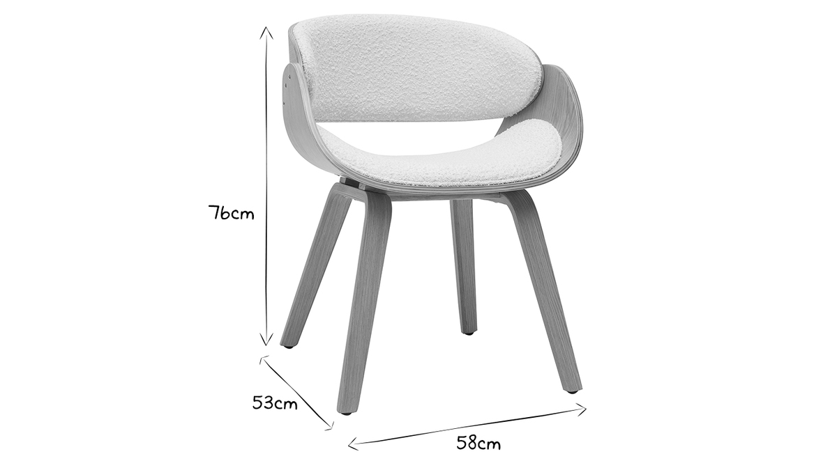 Chaise en tissu effet laine bouclée blanc et bois clair livrée prête à monter. Seul le piètement est à fixer.